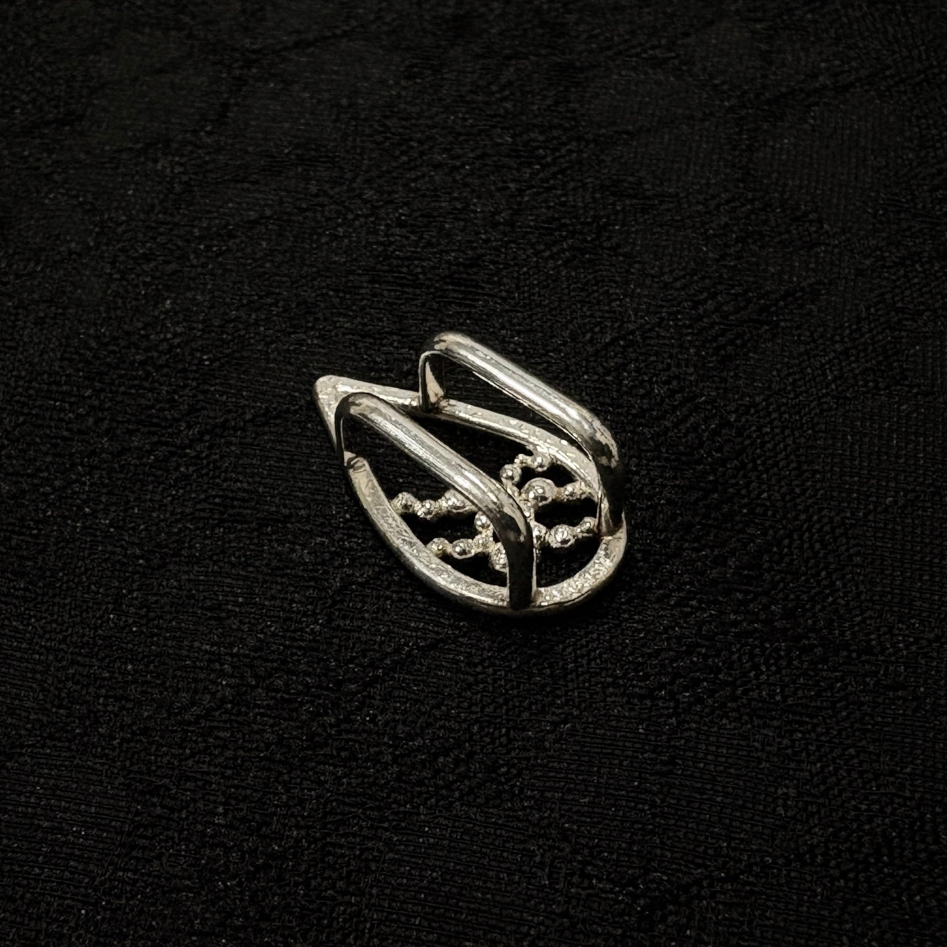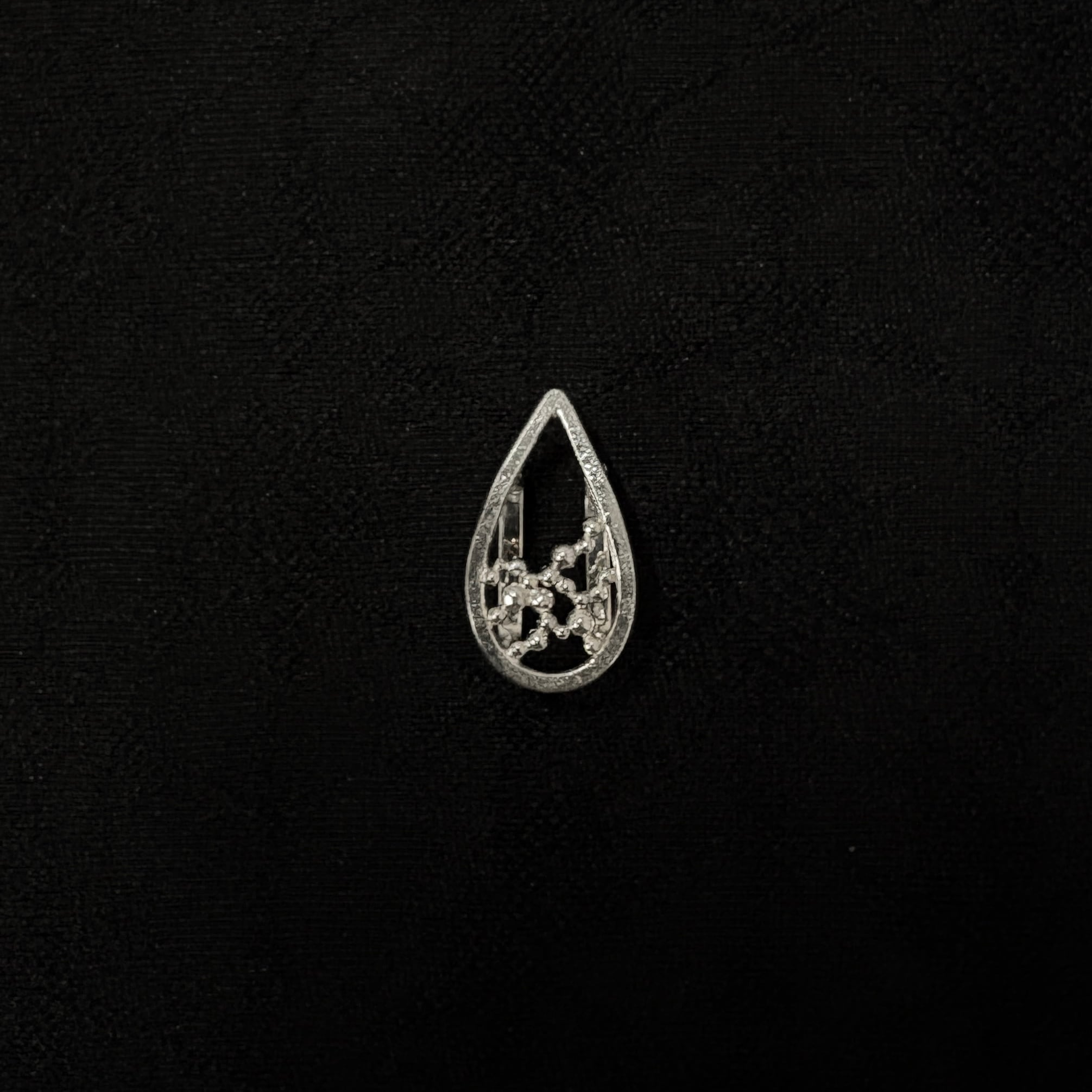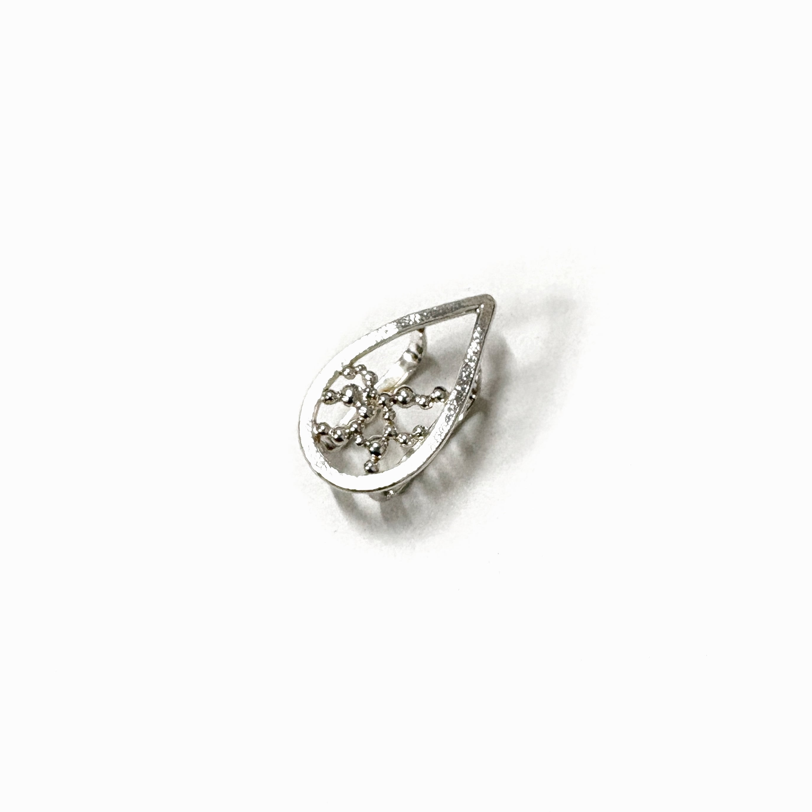 雫の中に水滴のような小さな銀の粒が重なりあう、シンプルながらも手間のかかる技法で作られた、さりげなくも存在感のある一粒です。