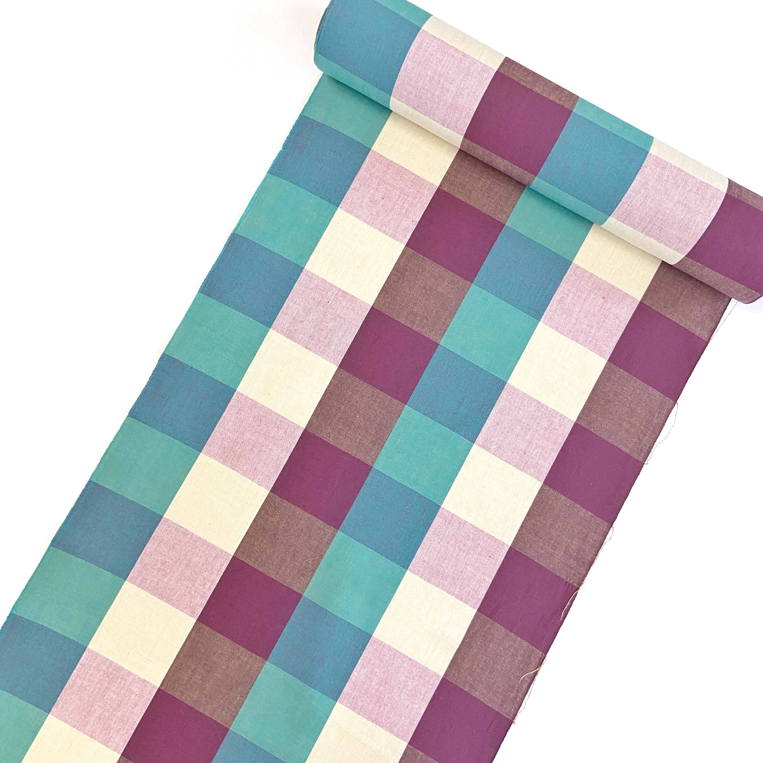 伊勢木綿 ブロックチェック 赤紫×ターコイズ