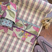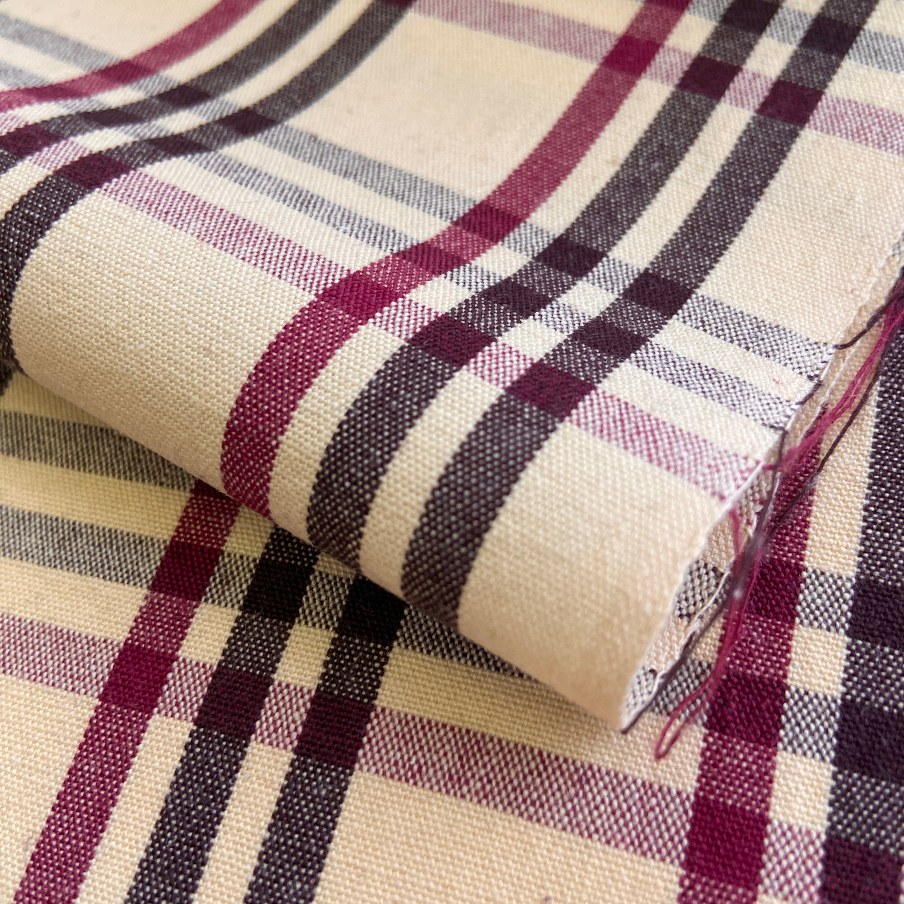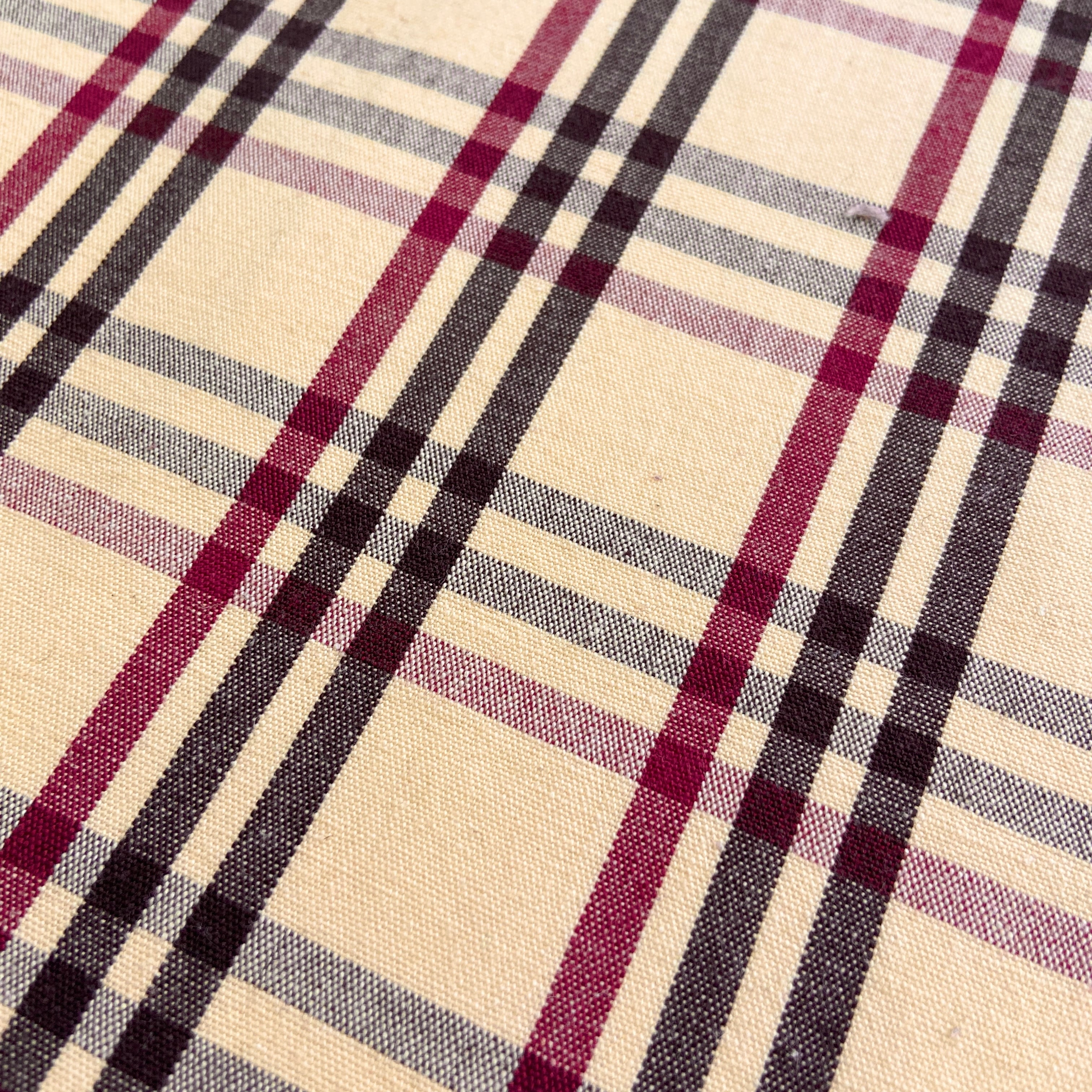 やわらかいクリームベージュの地色に、濃いブラウンとワインレッドのチェック。