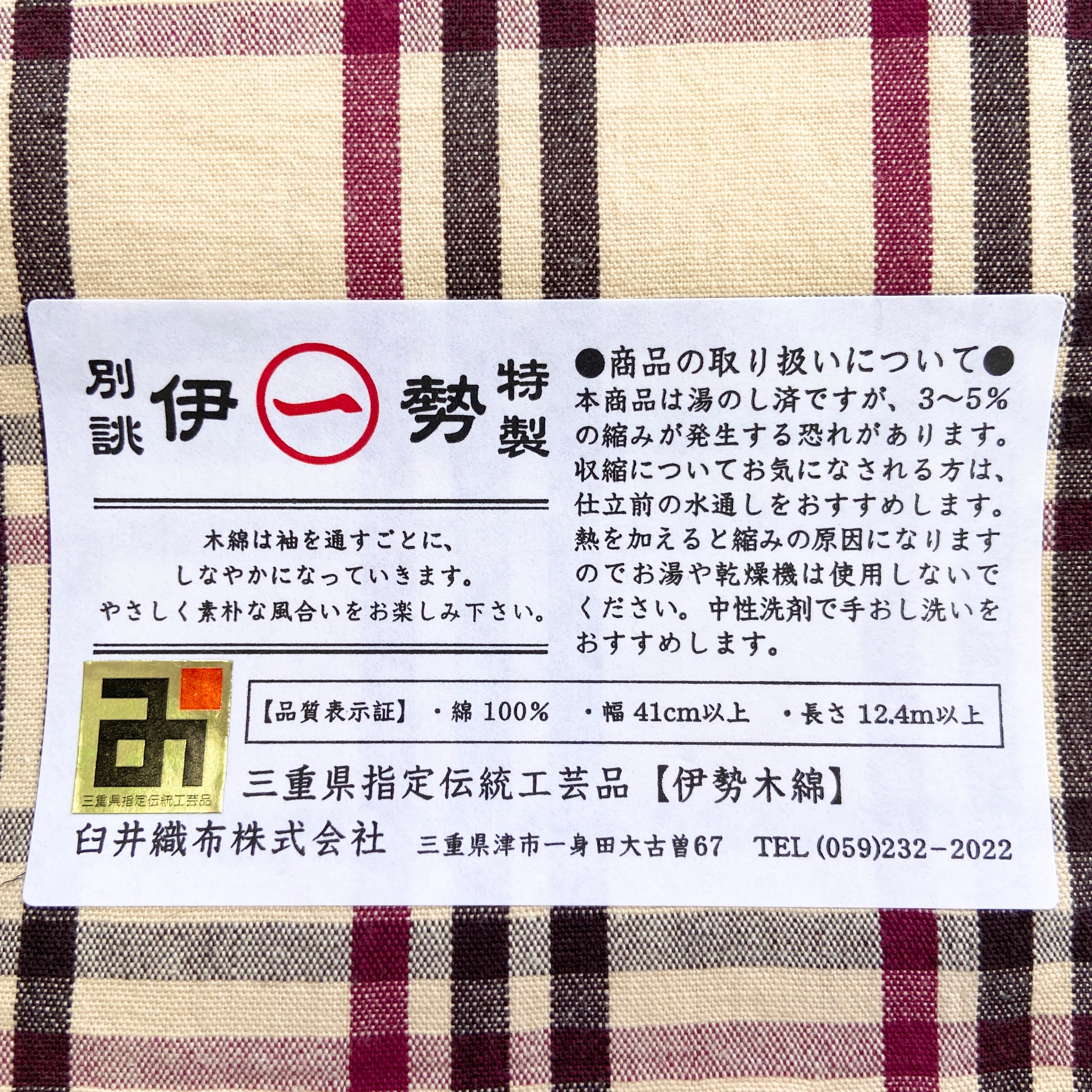 三重県指定伝統工芸品【伊勢木綿】 臼井織布(株)製