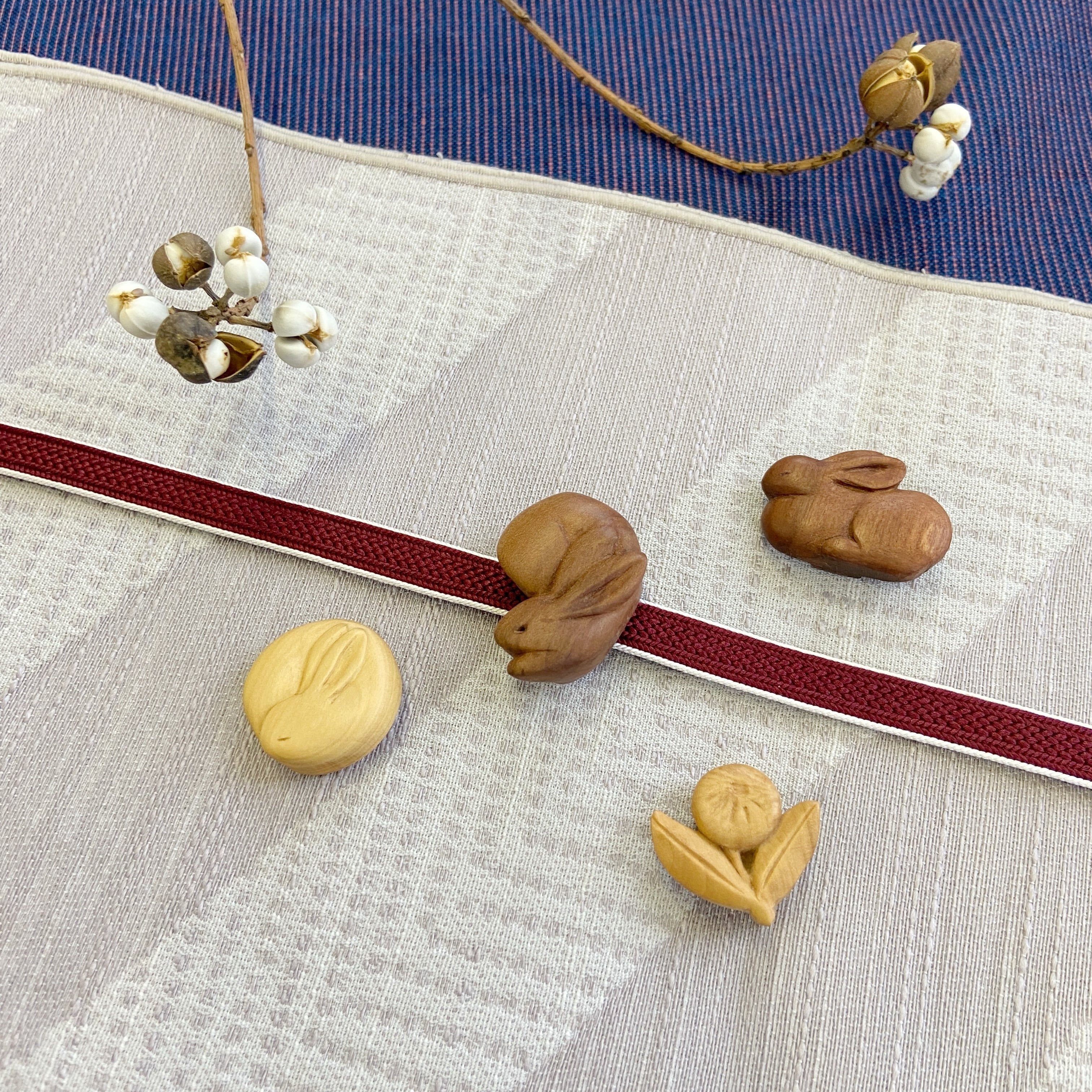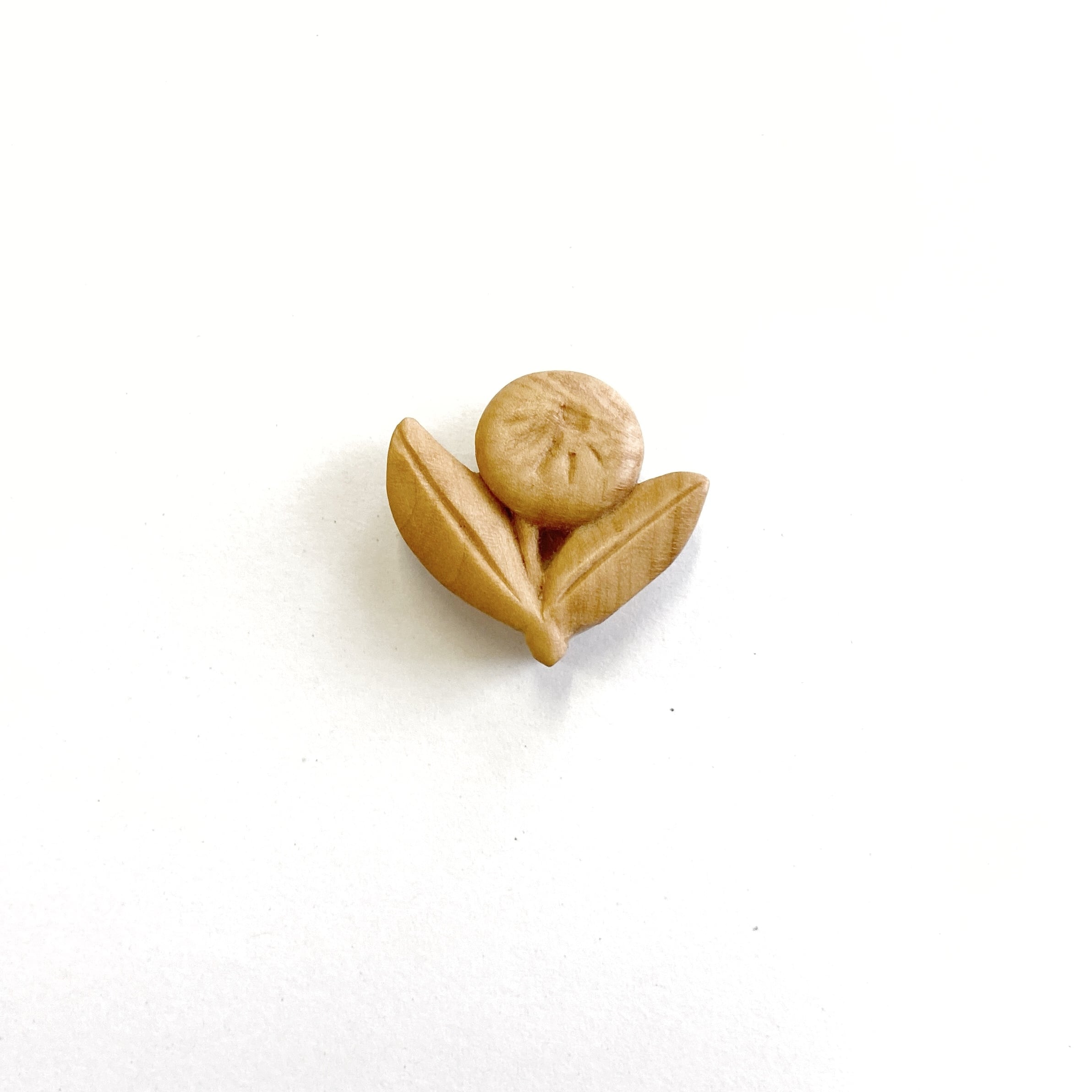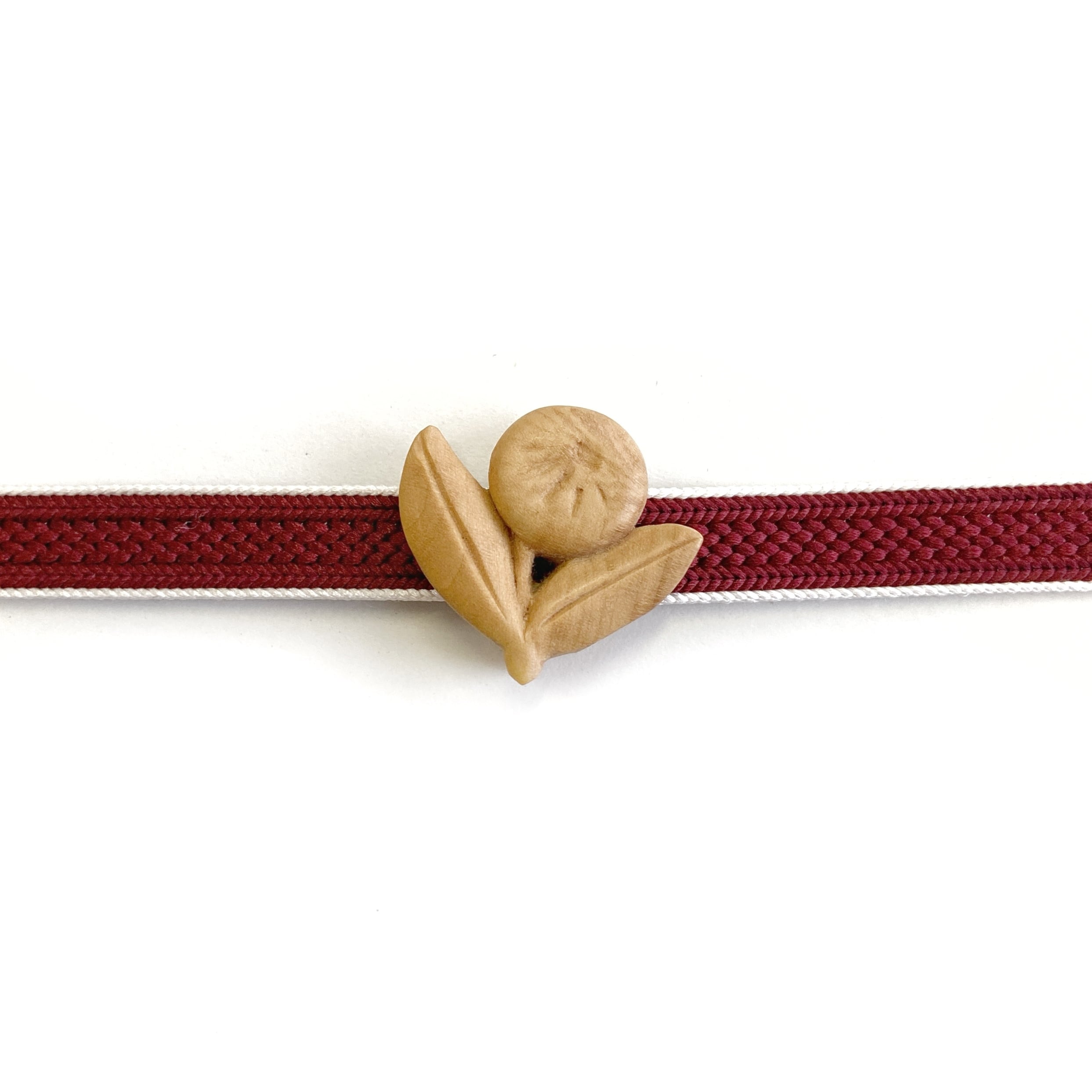 黄色味が強くツヤのある柘植を材に使用した、お花の帯留。