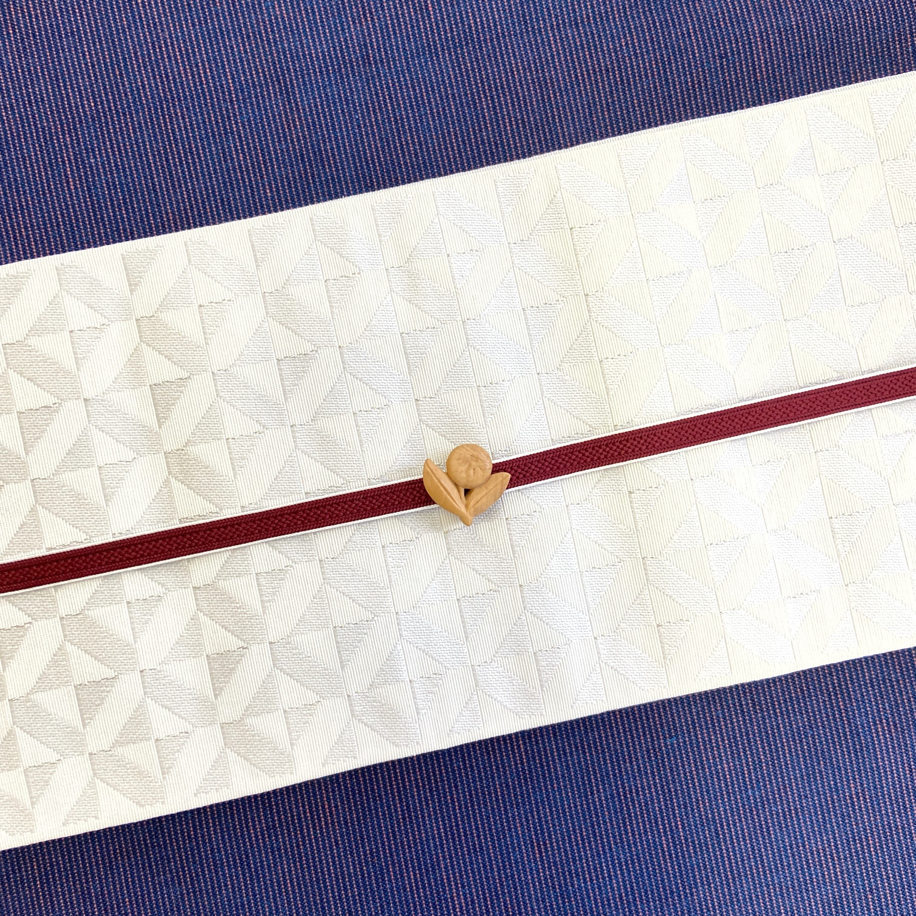 裏面に金具などをつけず、三分紐を通す部分も彫っているため、つけたときに帯から飛び出ずに綺麗な一体感があります。