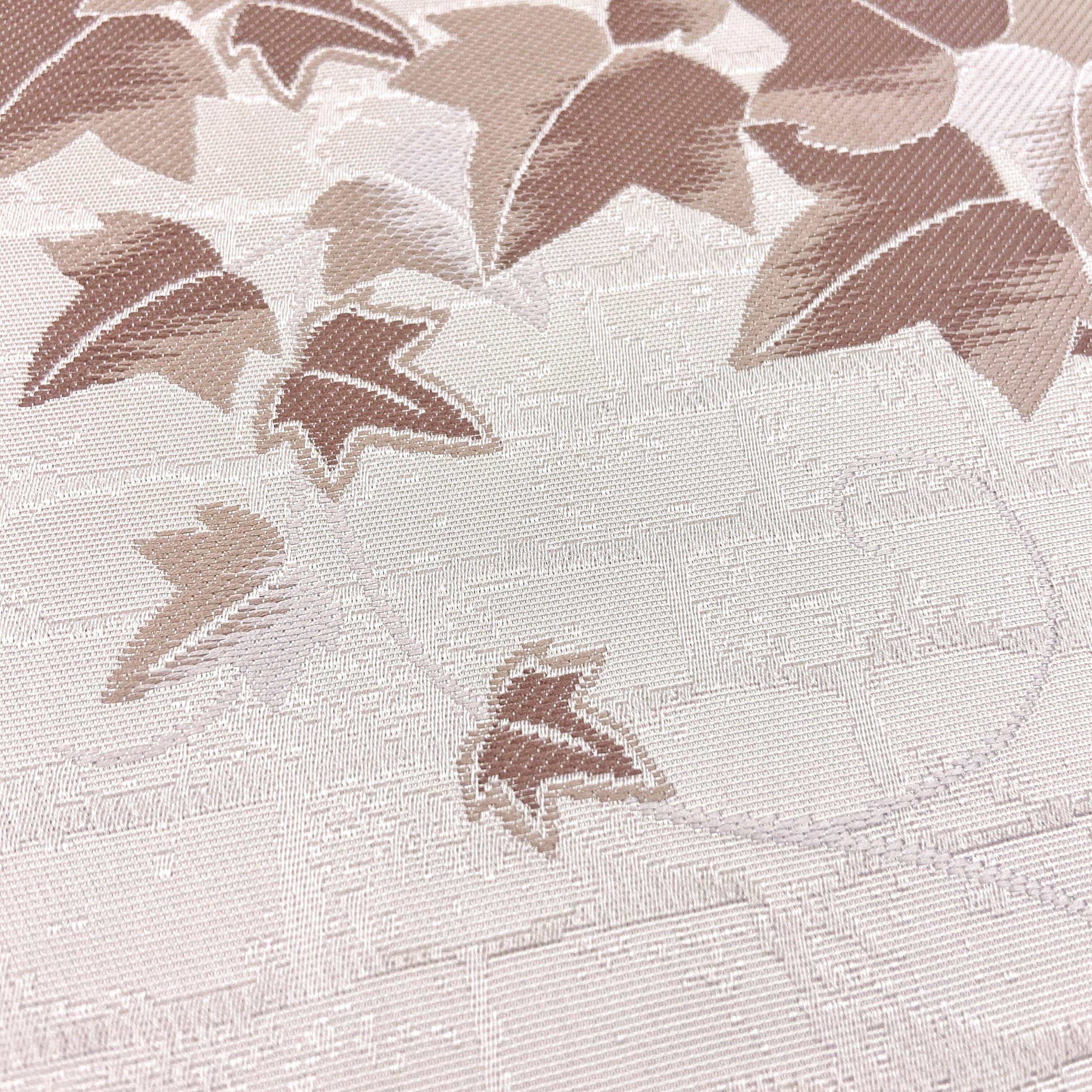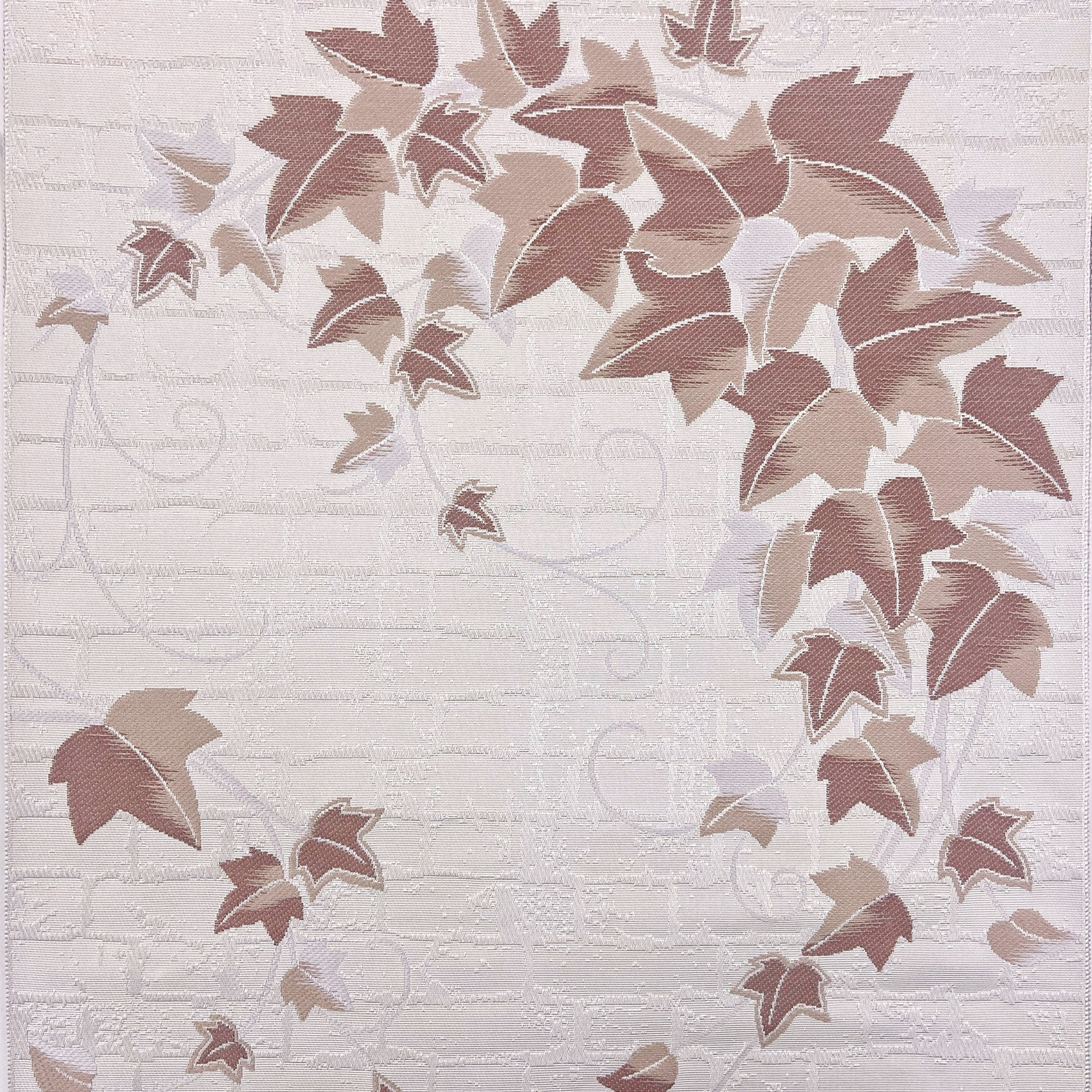 光沢あるごくオフホワイトの地にスモーキーなピンクがかった葉の濃淡が雰囲気のある配色。