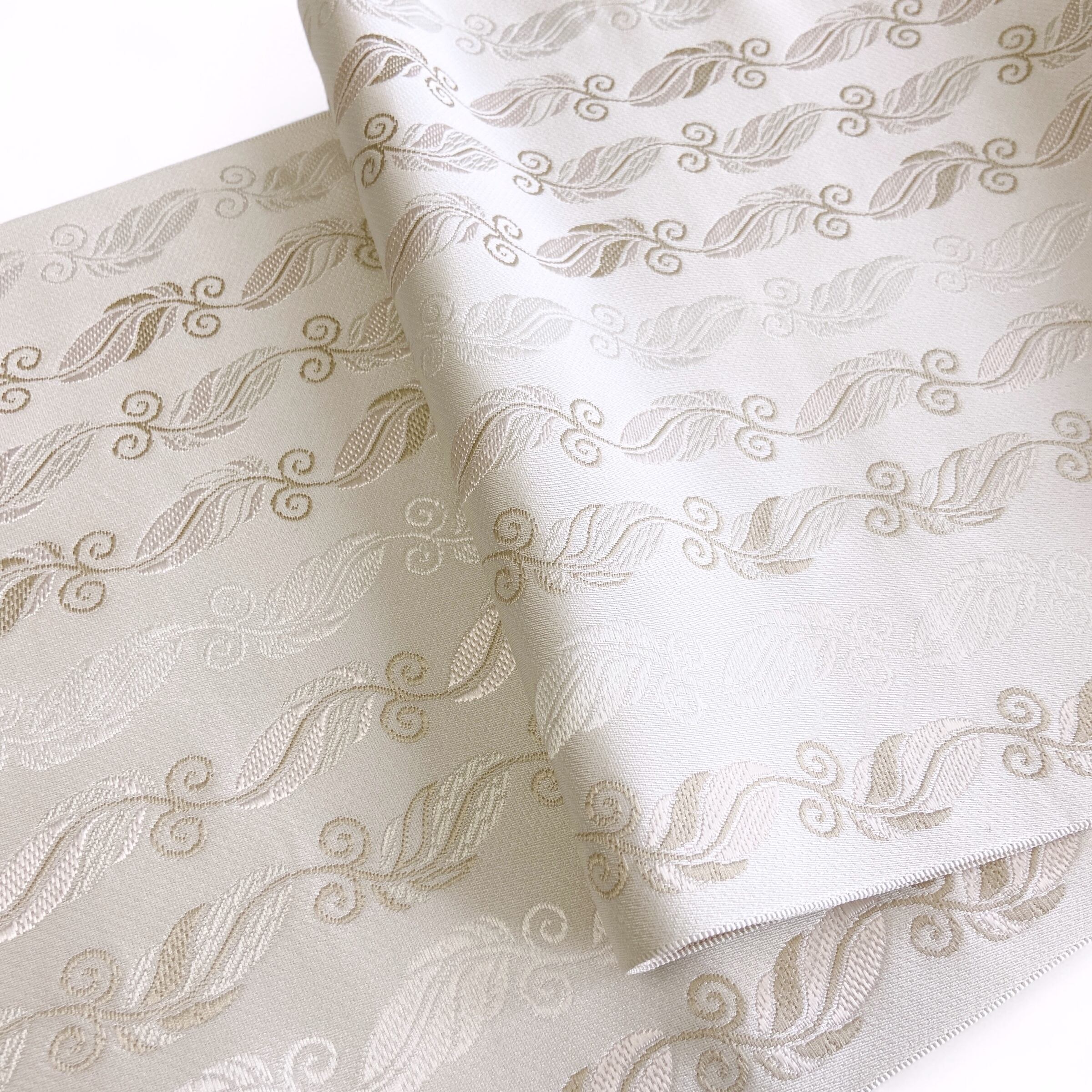 博多八寸名古屋帯 羽根 パールホワイト