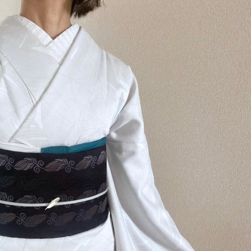 柄のコントラストが強くないため、総柄の小紋などにも無地感の帯としてすっきり合わせられます。