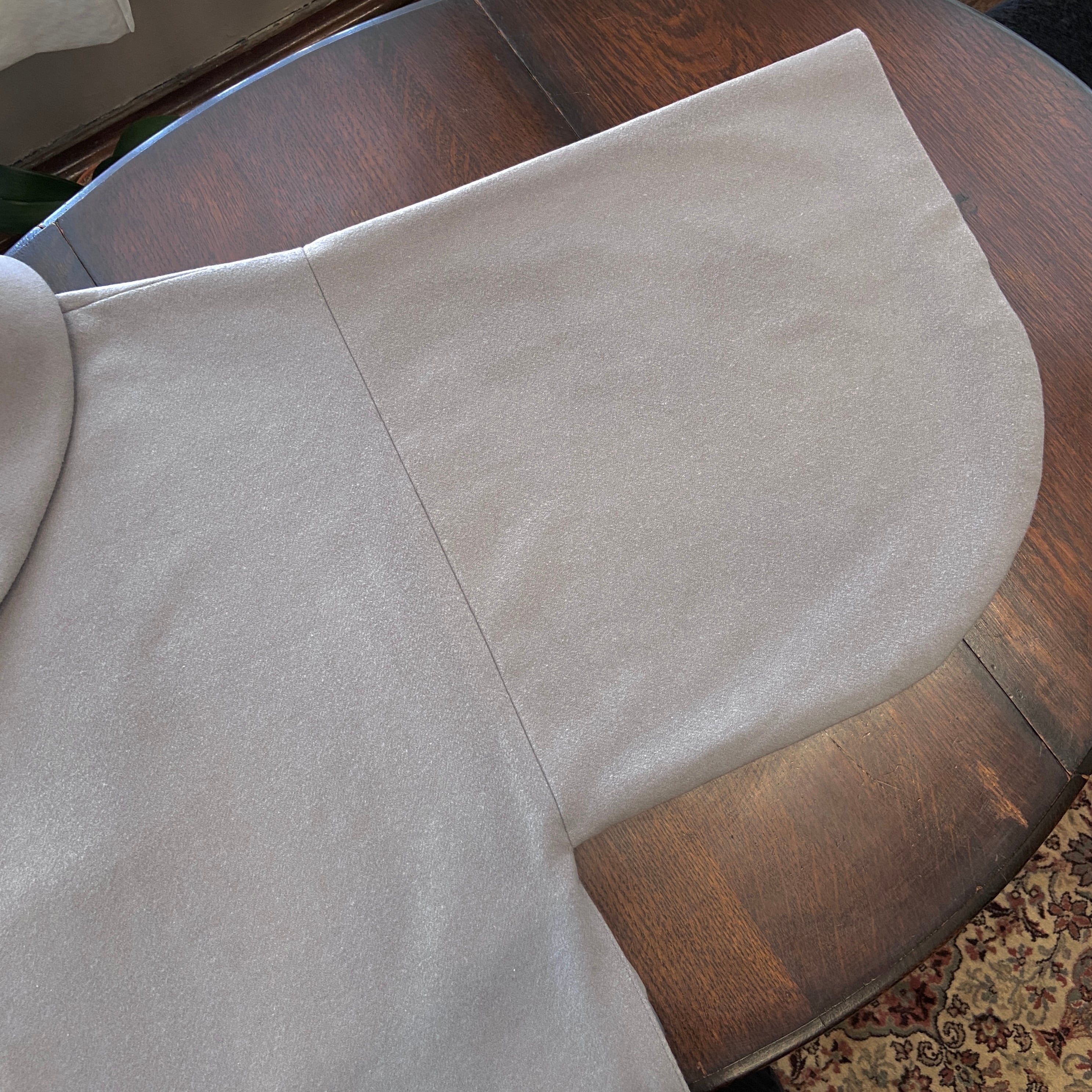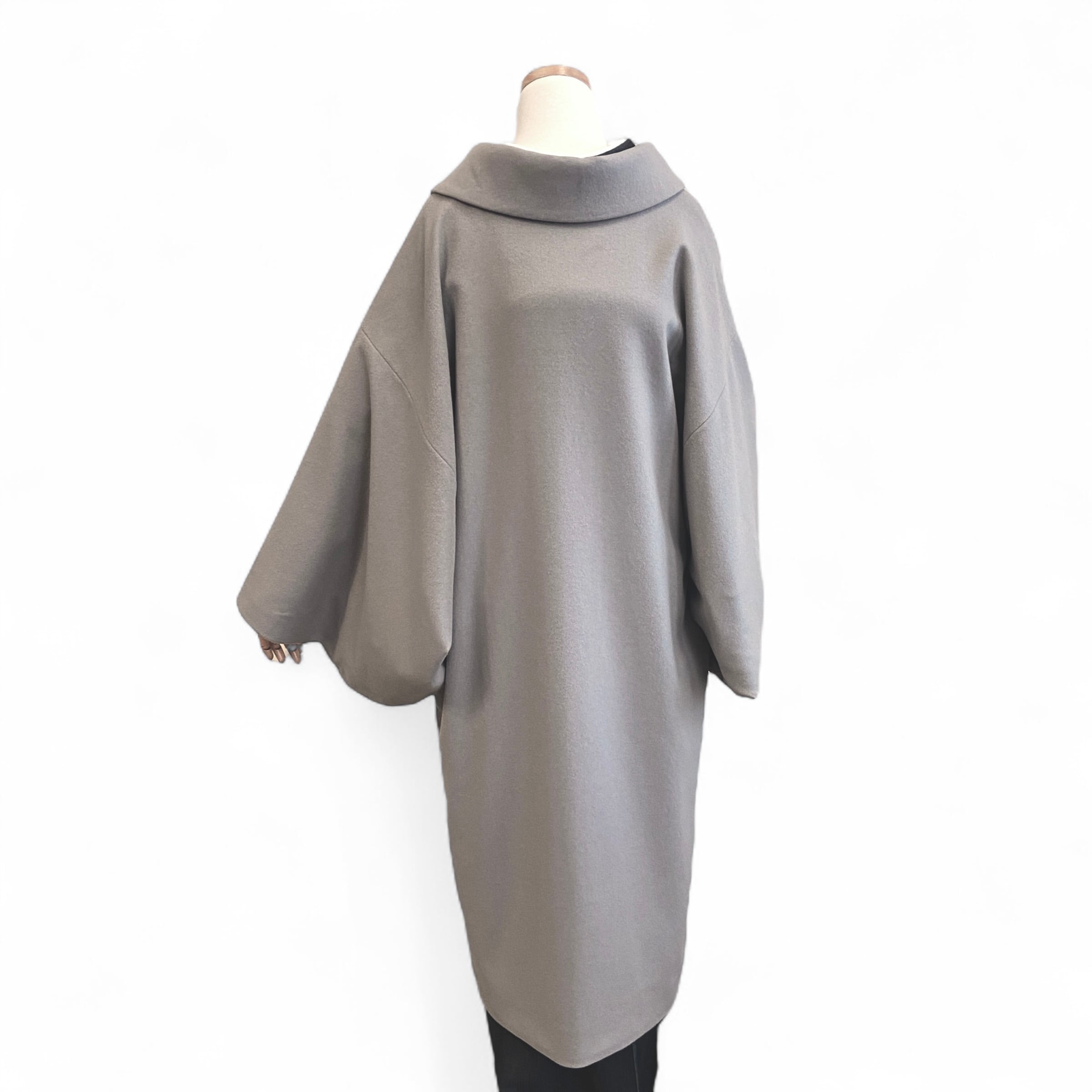 色は、独特の雰囲気のあるニュアンスグレー。グレーにブラウンとパープルも1滴ずつ溶かしこんだような、言葉では表現しきれない深みのあるニュアンスカラーです。上品な高級感が大変素敵なカラーで、エレガントにお召いただけます。