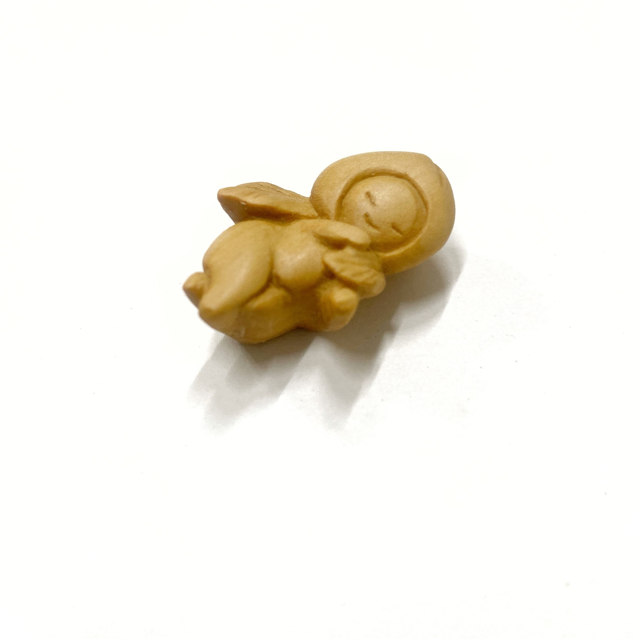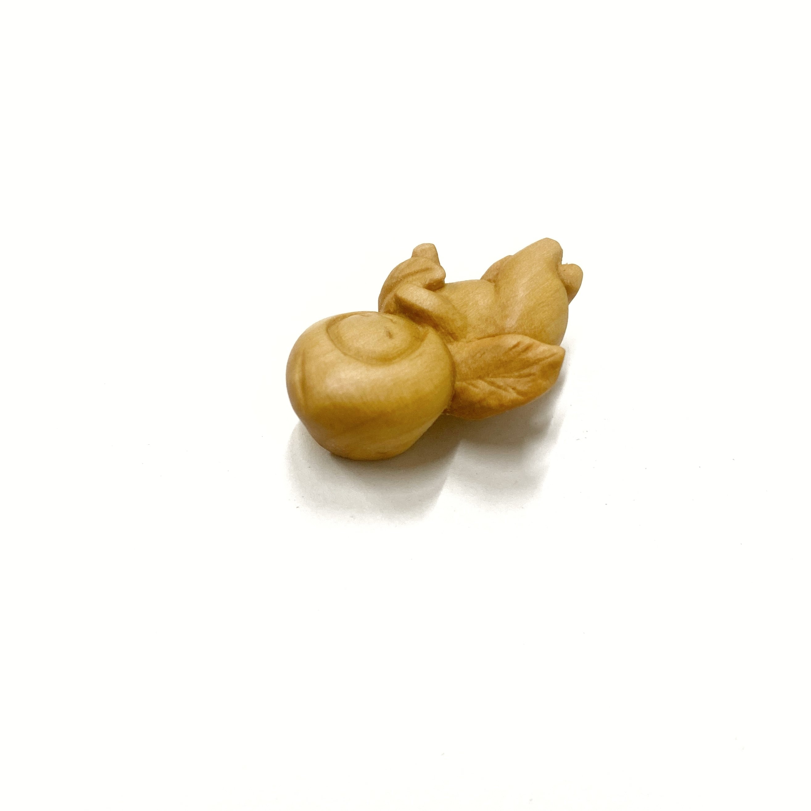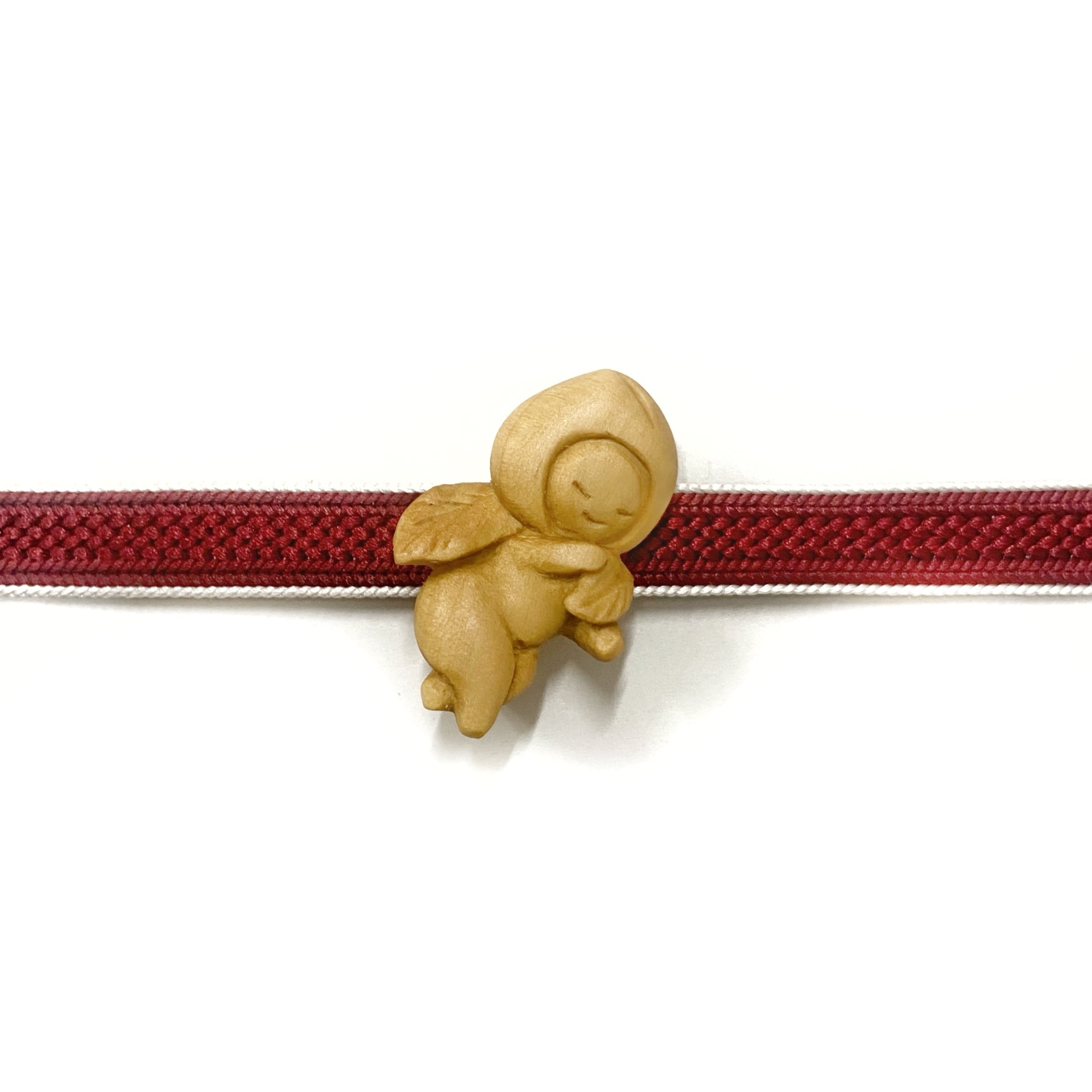 黄色味が強くツヤのある柘植を材に使用した、ピーチ坊やの帯留。