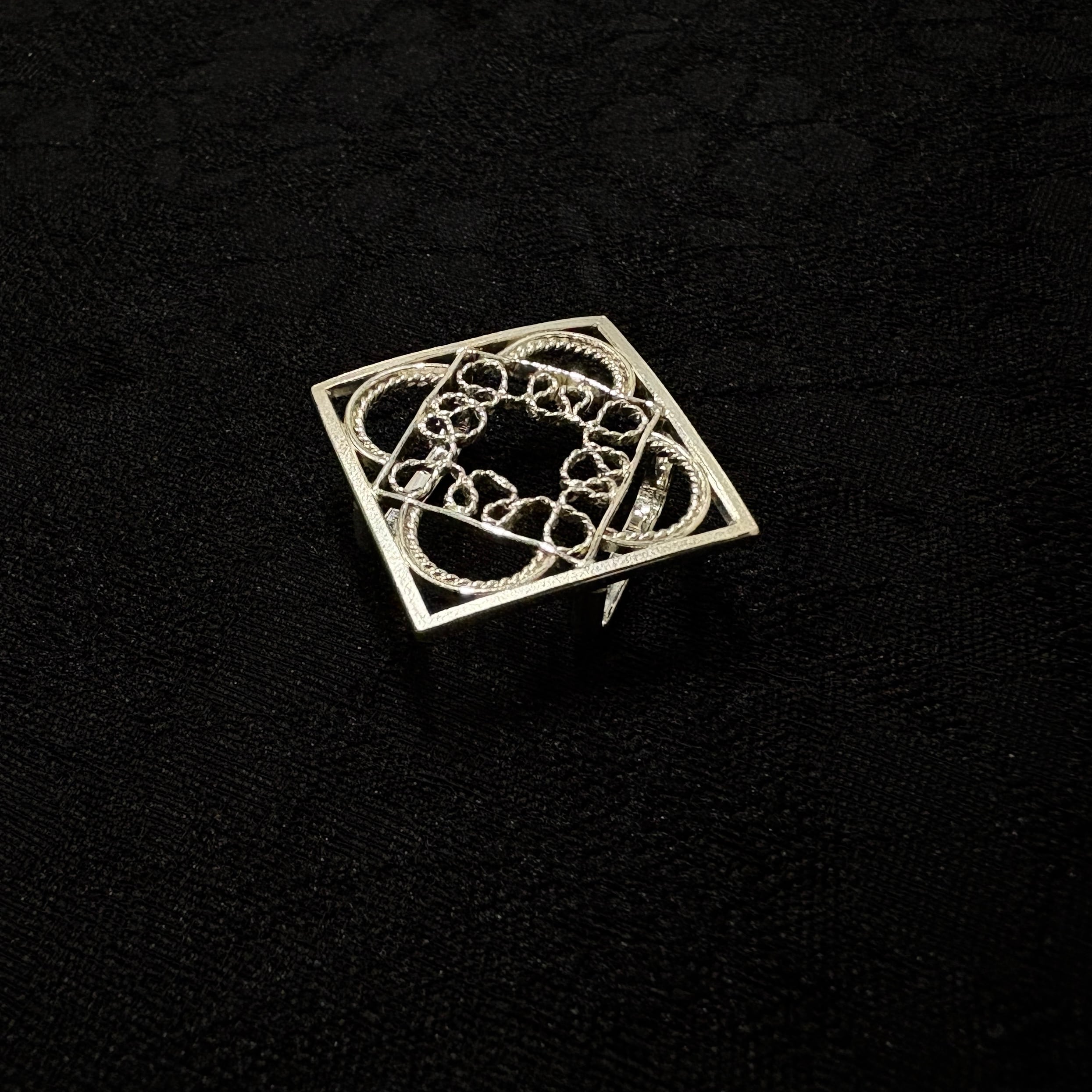 繊細な銀線細工の技法で作られた、繊細で美しい帯留。