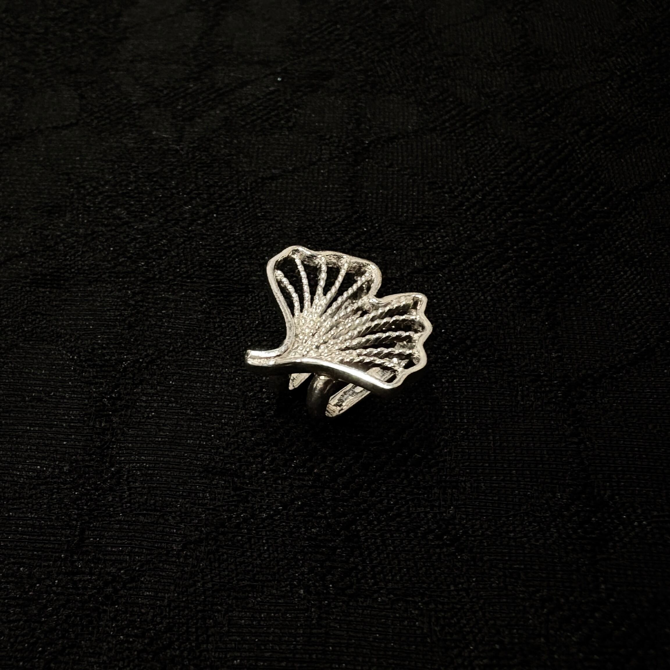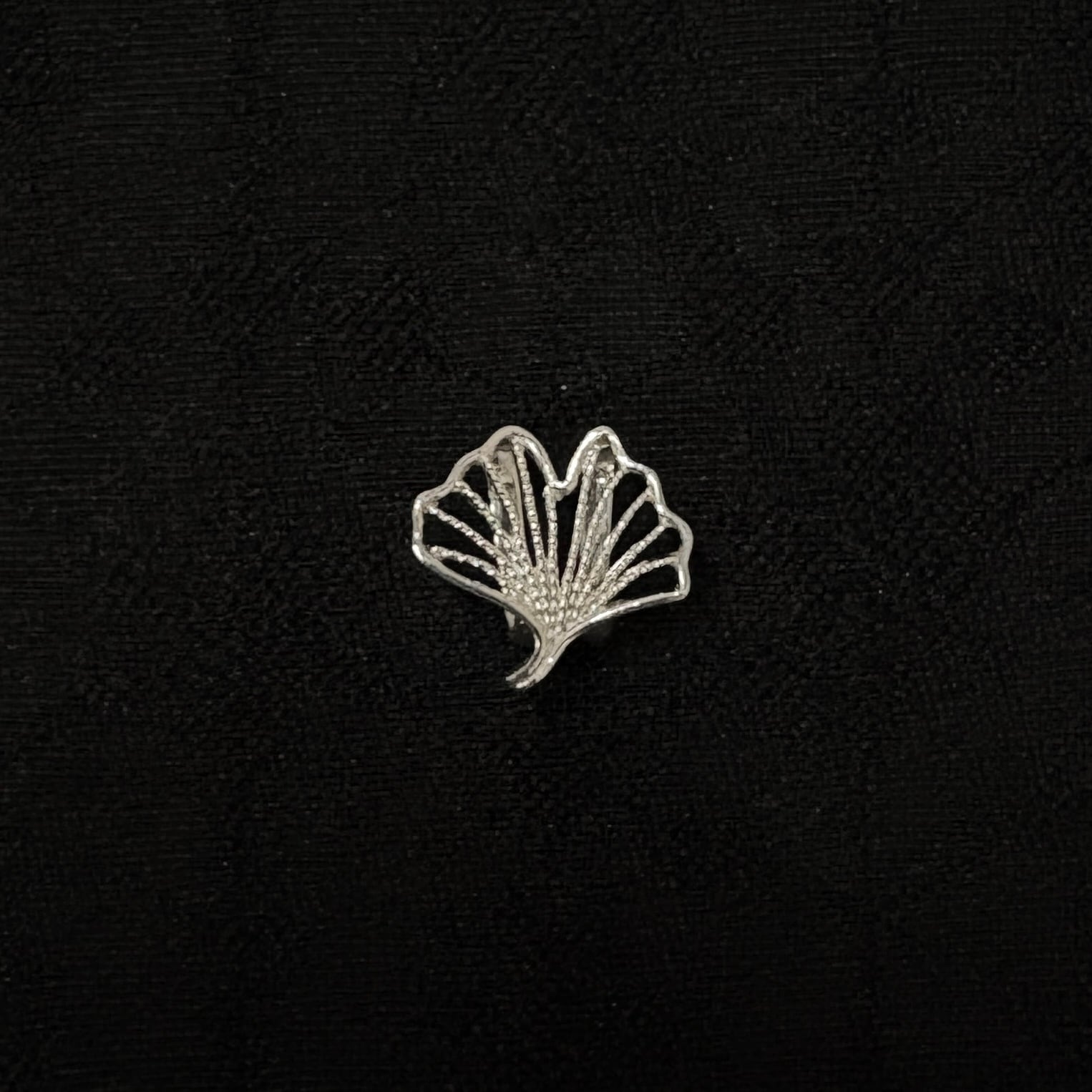 繊細な銀線細工の技法で作られた、銀杏の葉をモチーフにした帯留。