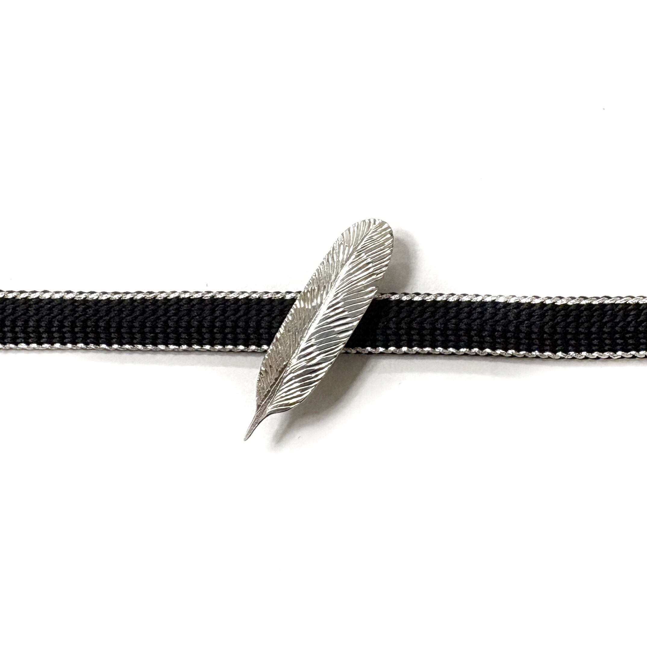 ひとひらの羽根を表現した帯留のシリーズのうち、大サイズ。