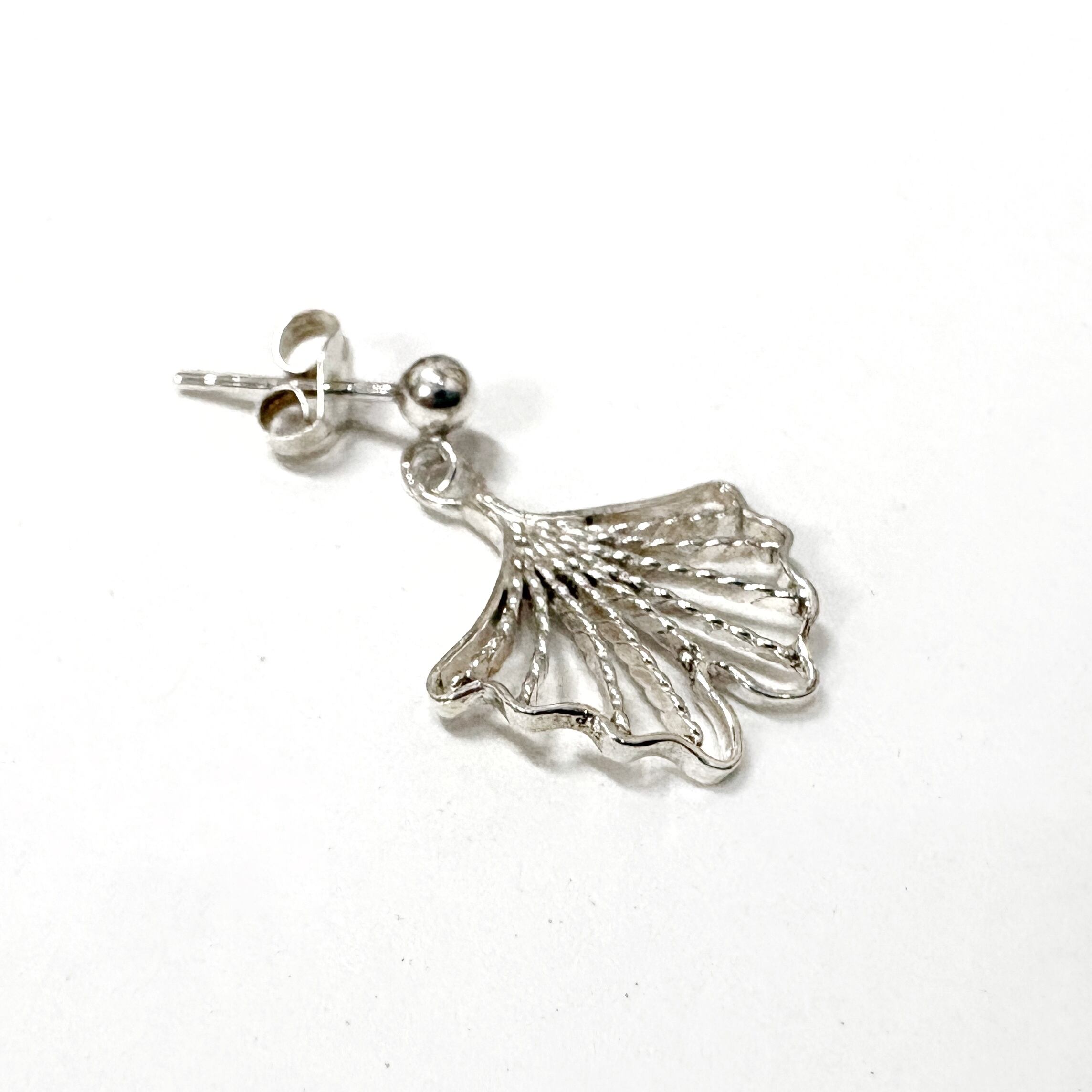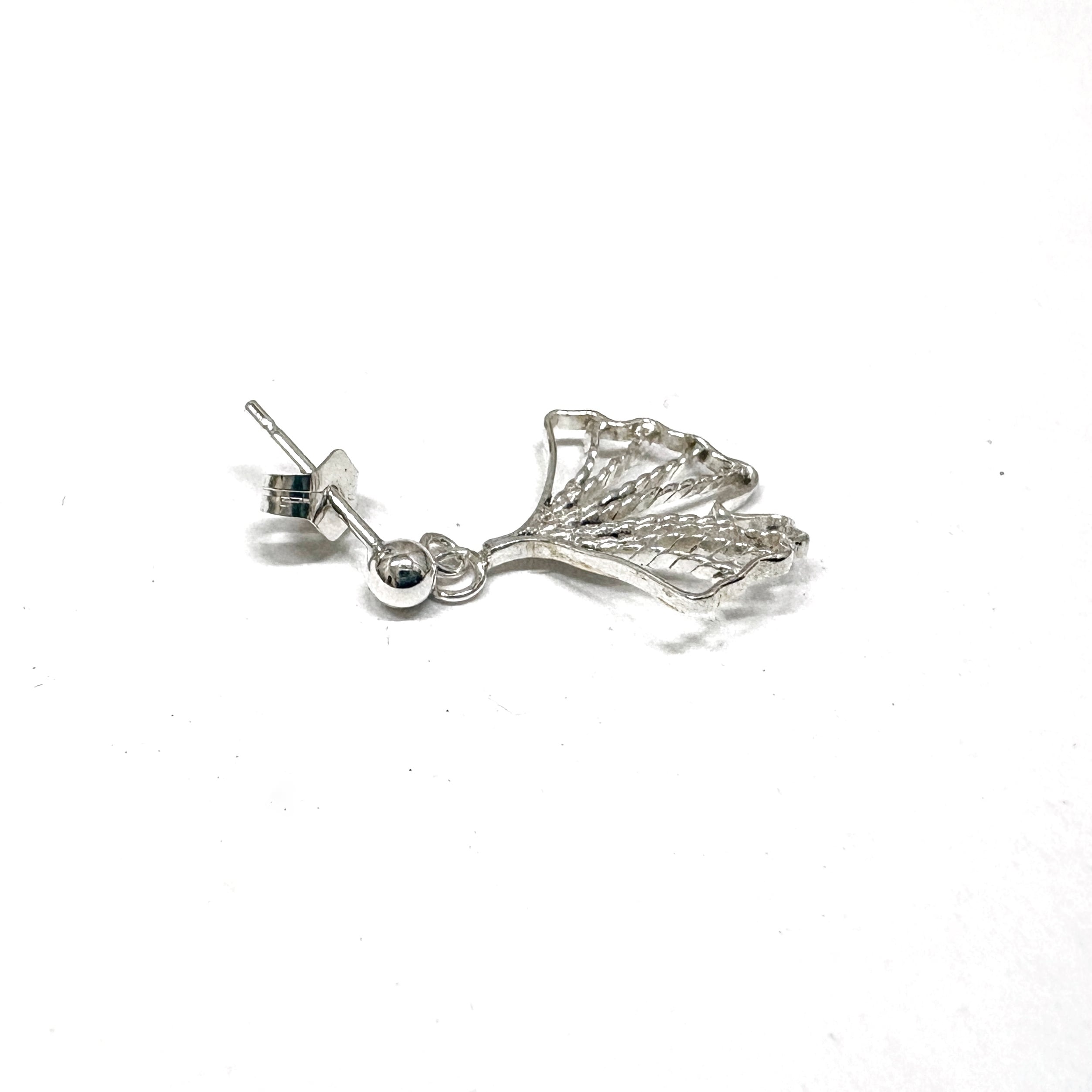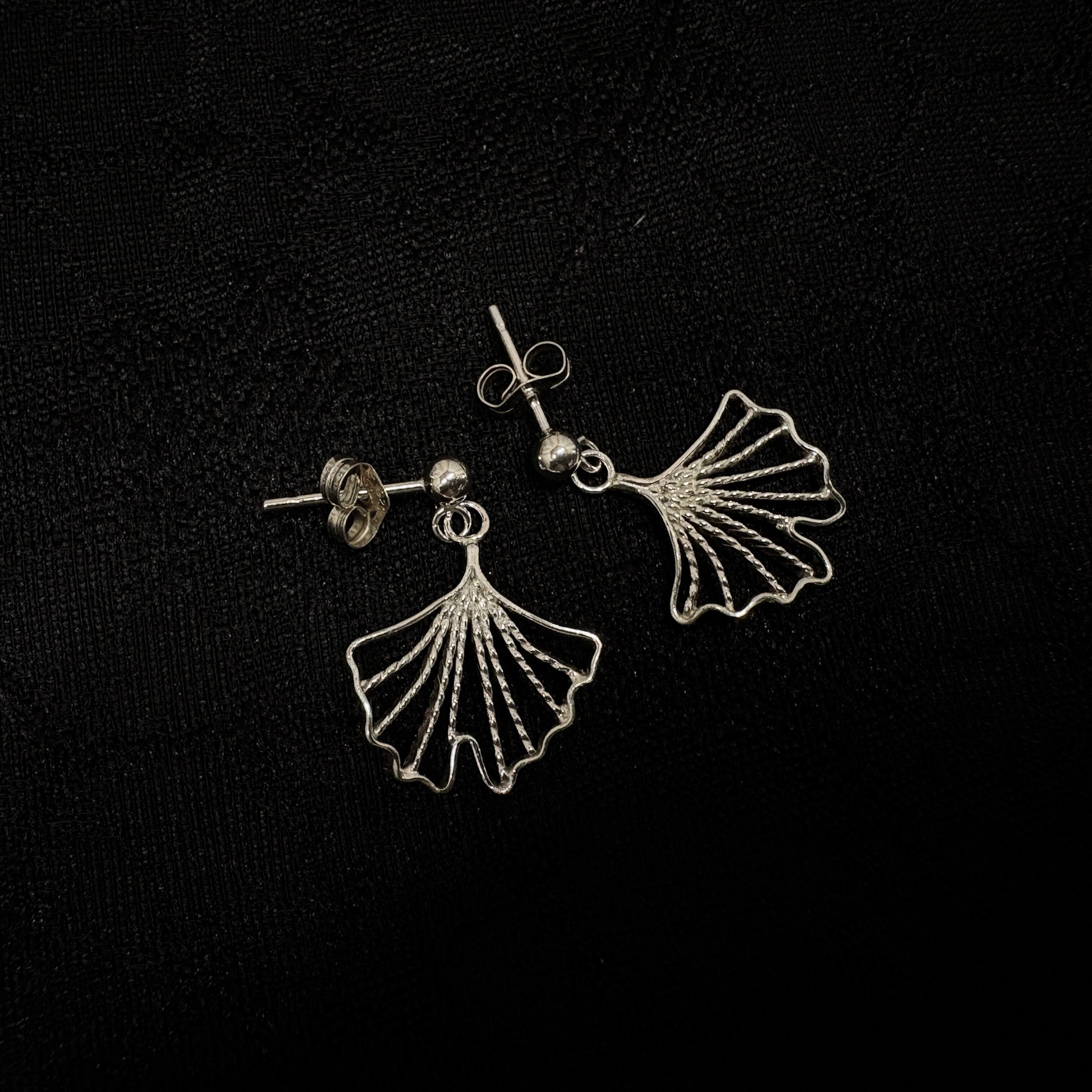 繊細な銀線細工の技法で作られた、銀杏の葉をモチーフにしたピアス。