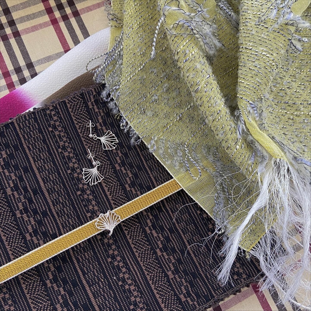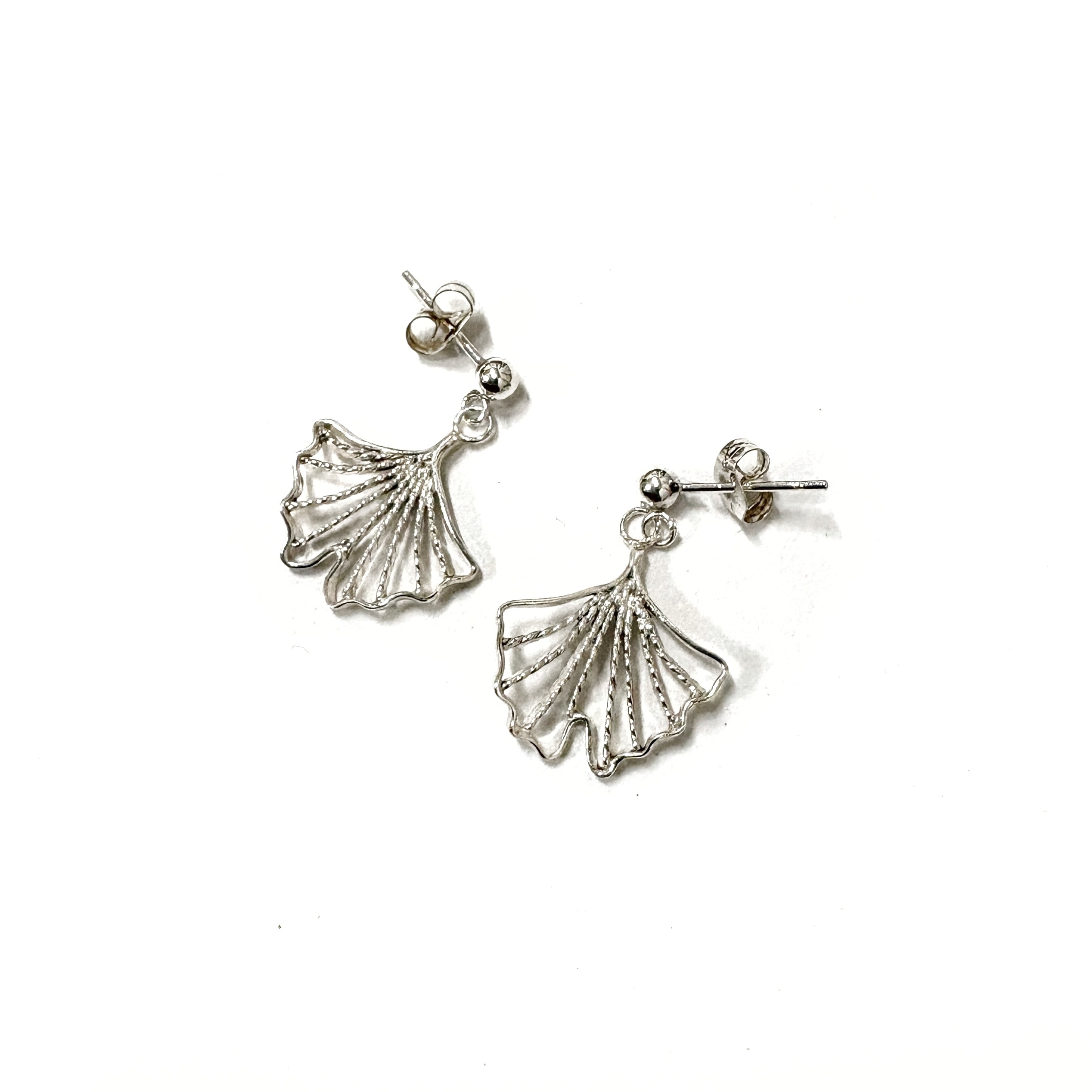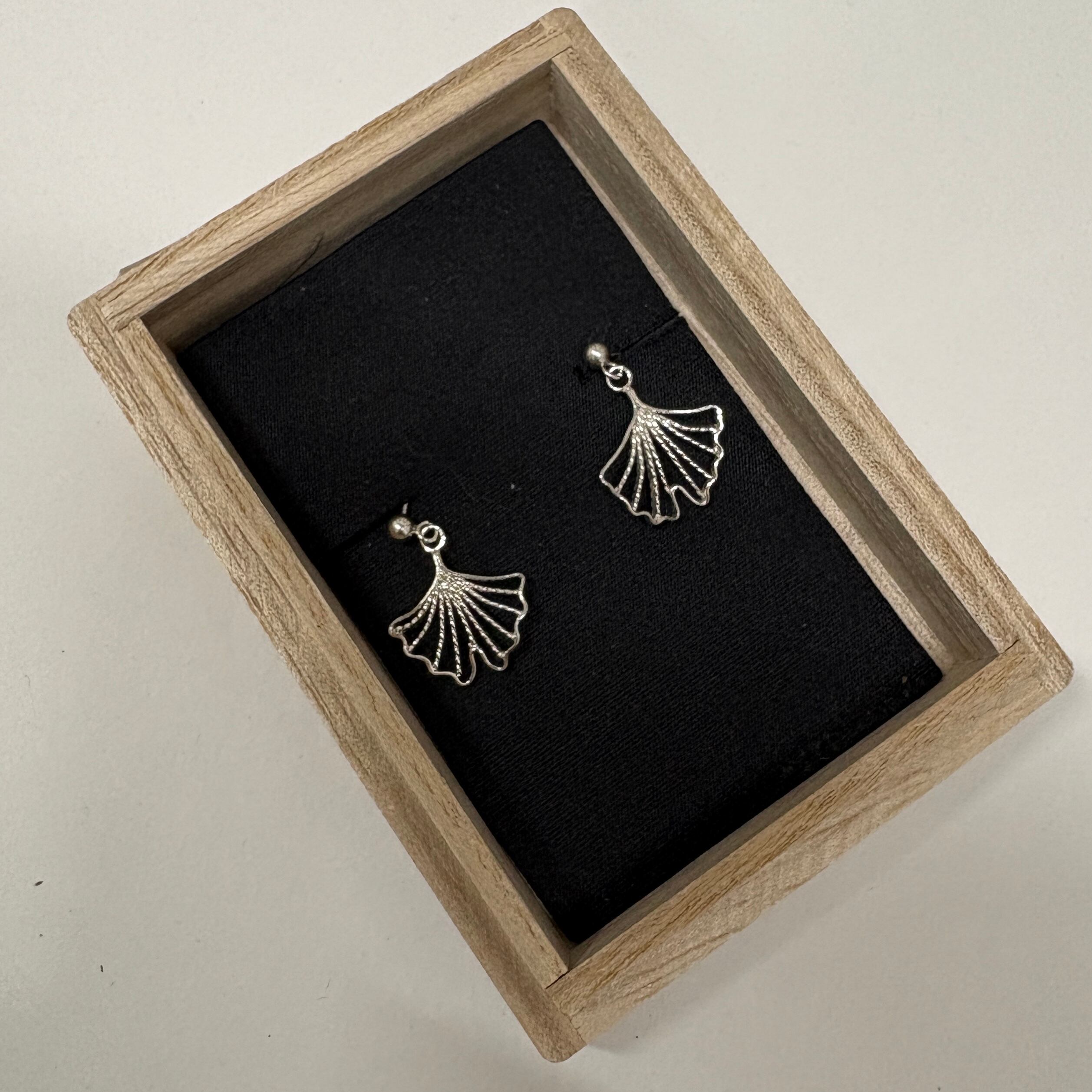 繊細な銀線細工の技法で作られた、銀杏の葉をモチーフにしたピアス。