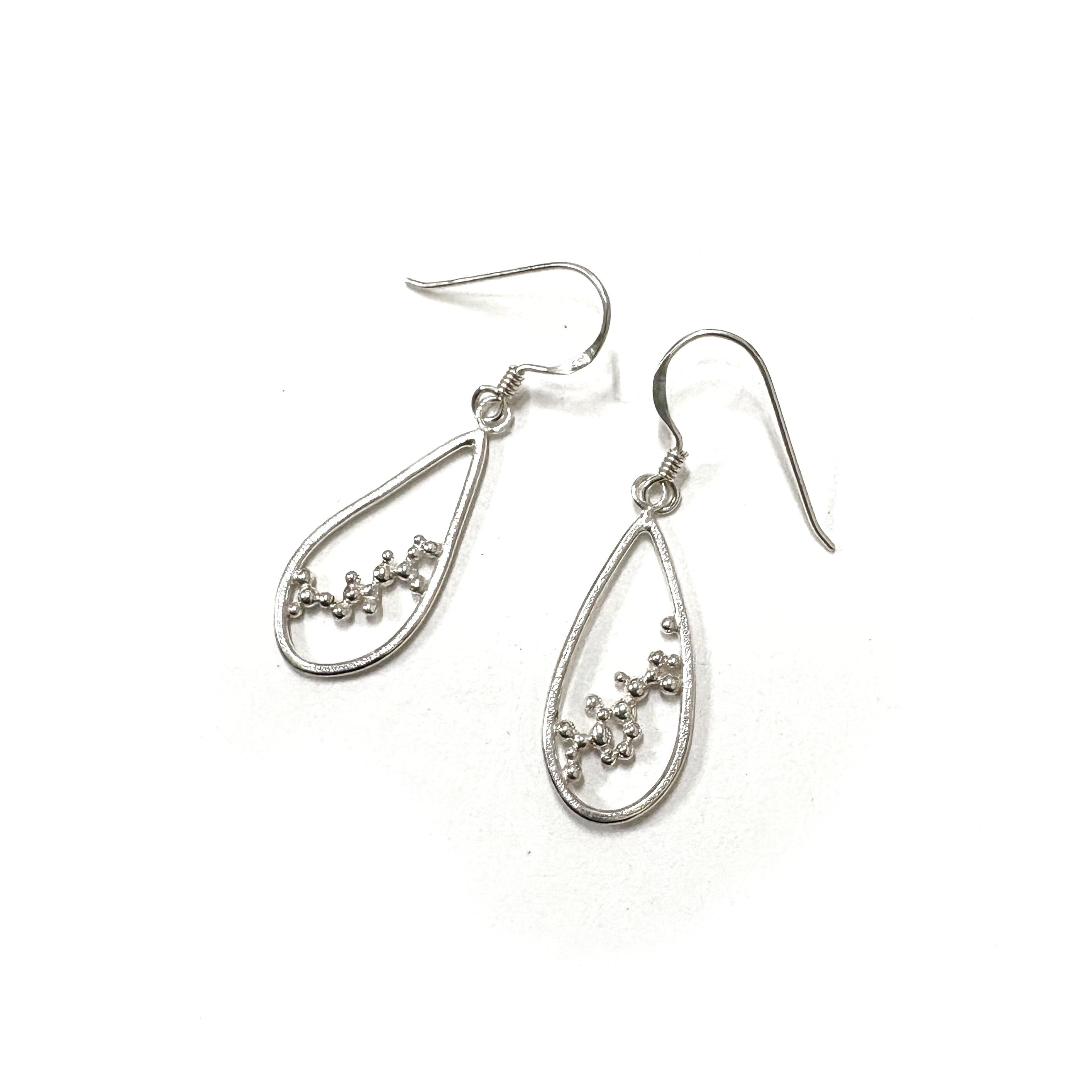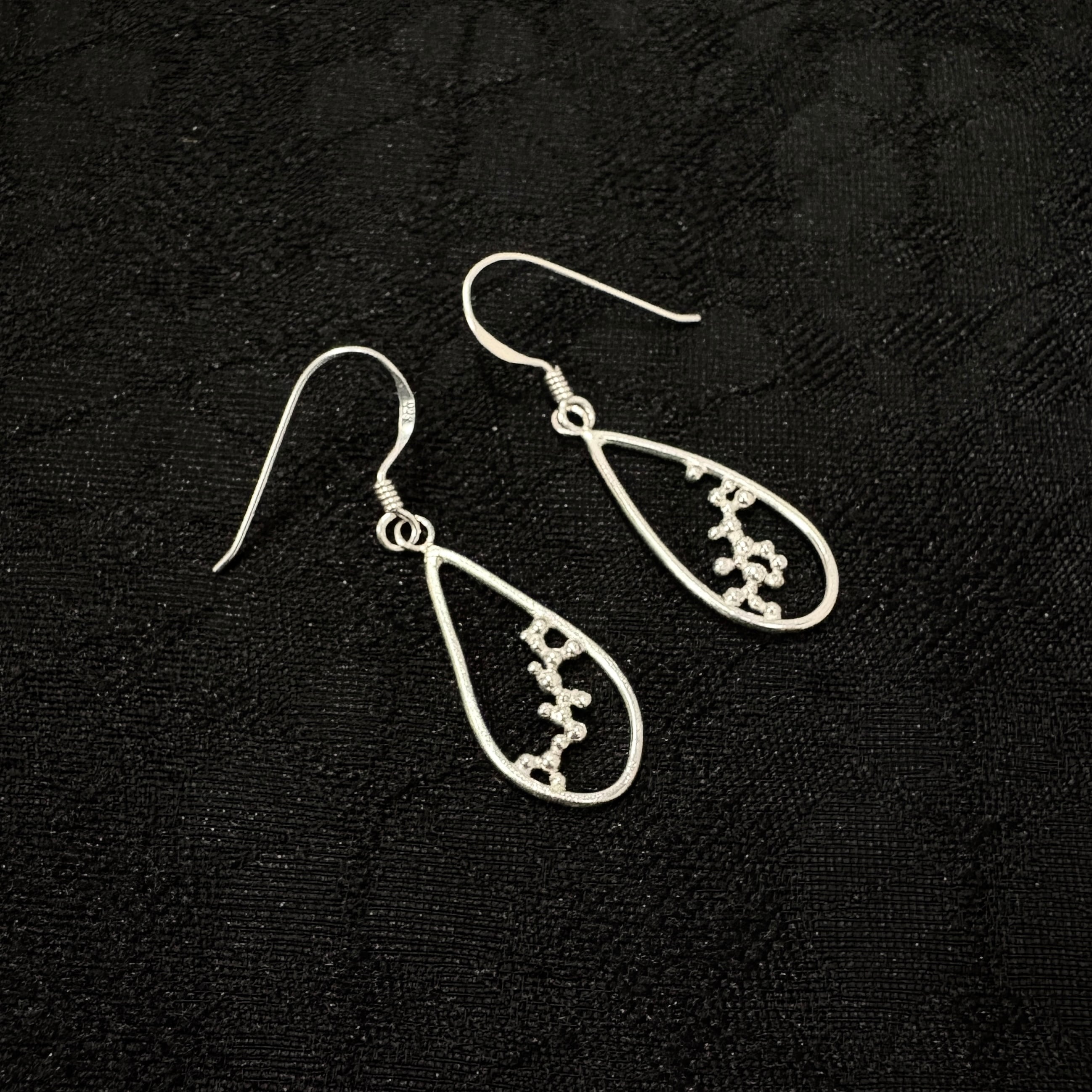 雫の中に水滴のような小さな銀の粒が重なりあう、手間のかかる技法で作られた作品です。