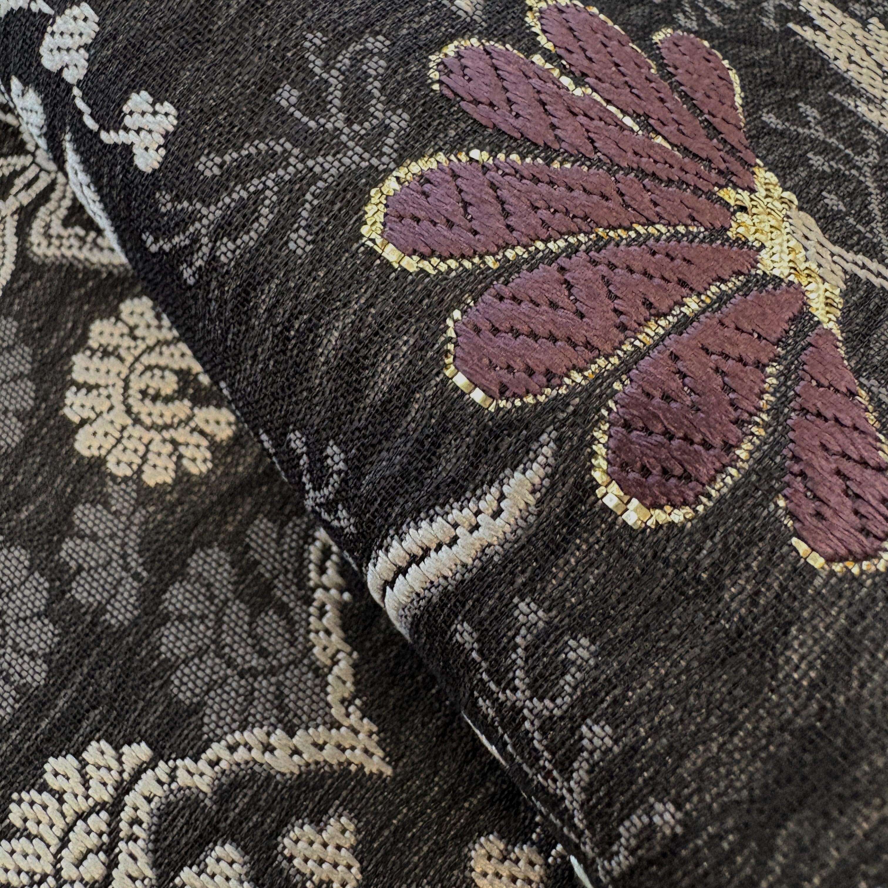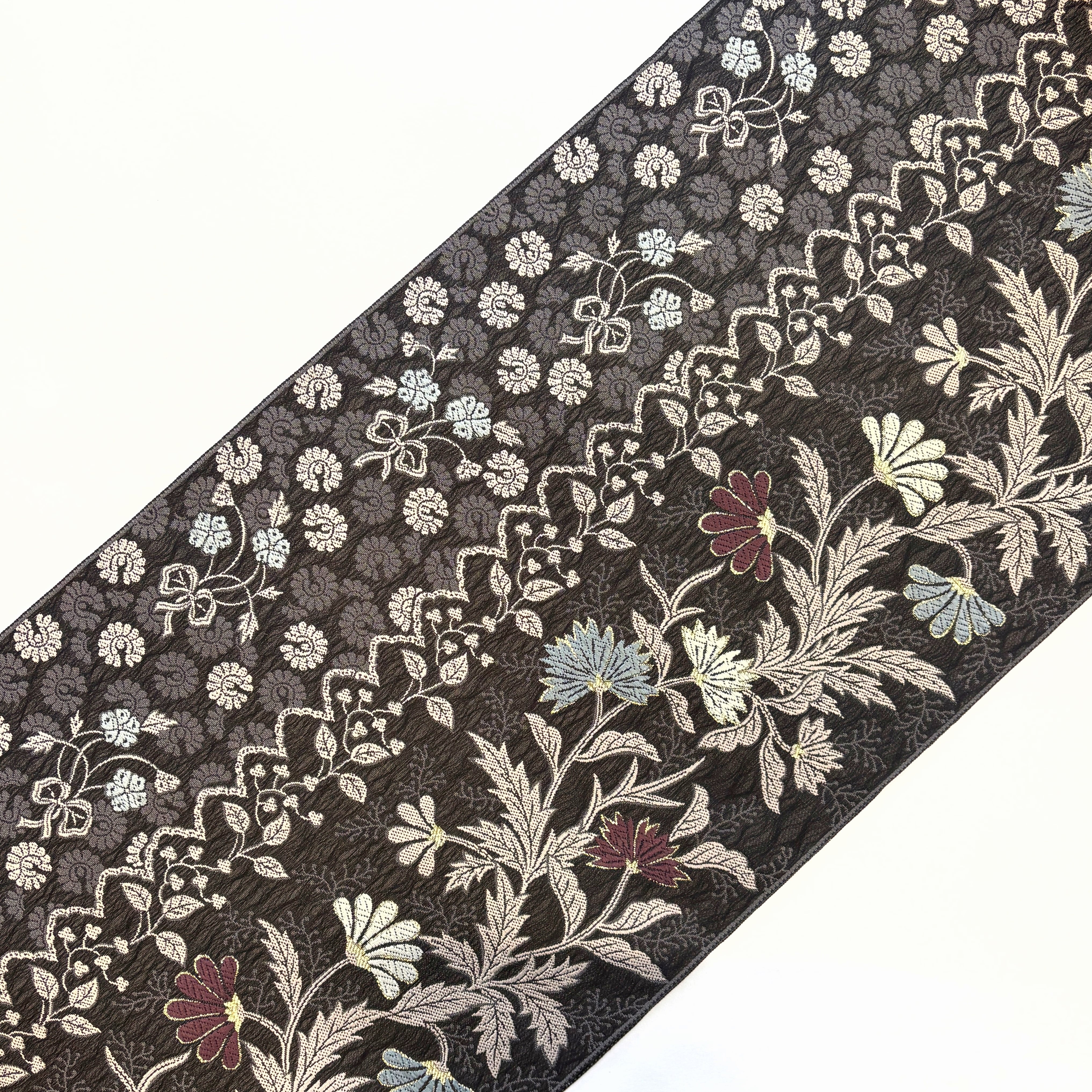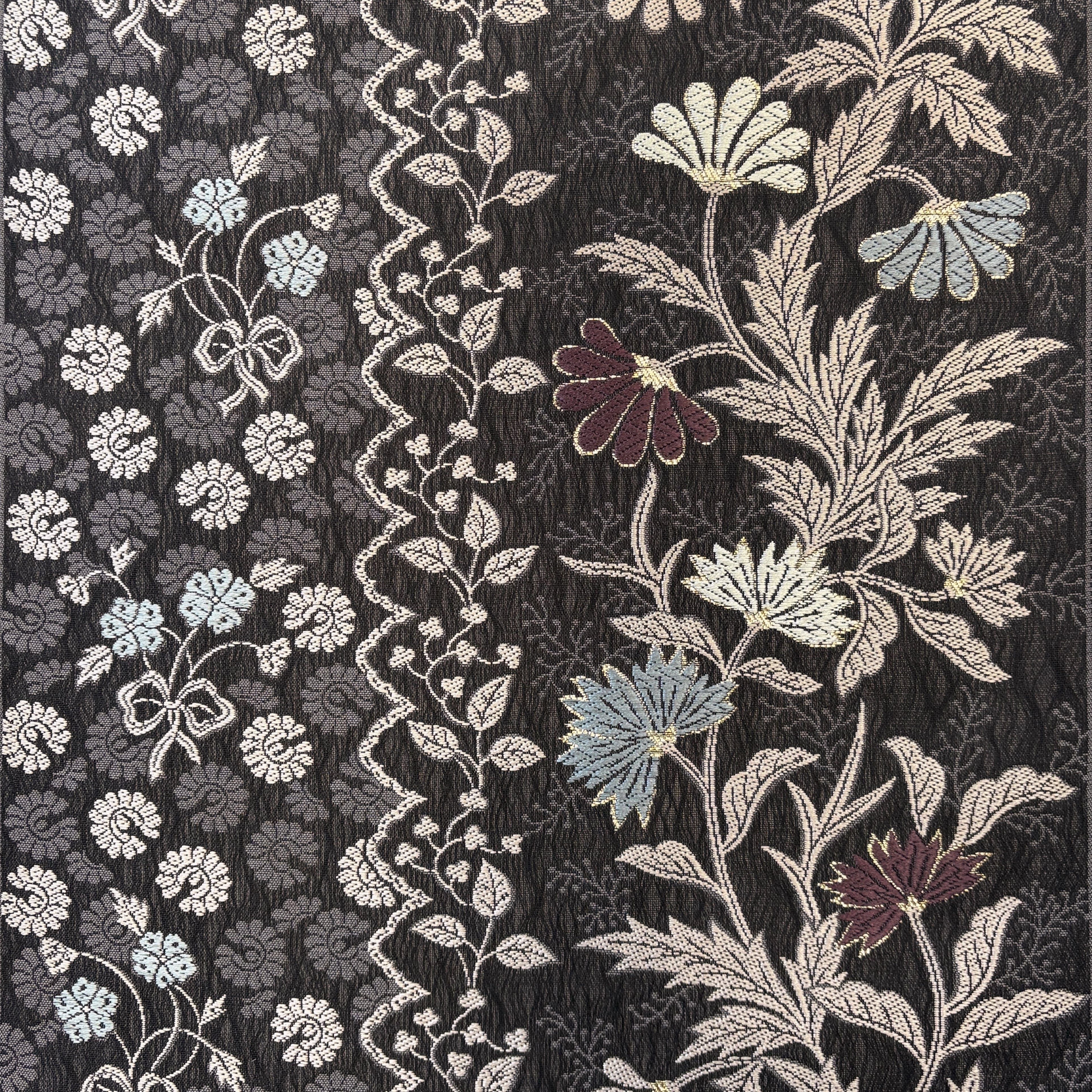 軽やかな立体感のある地にアールヌーヴォーを思わせる洋風な唐草や花模様が織り出された、エレガントなデザインです。