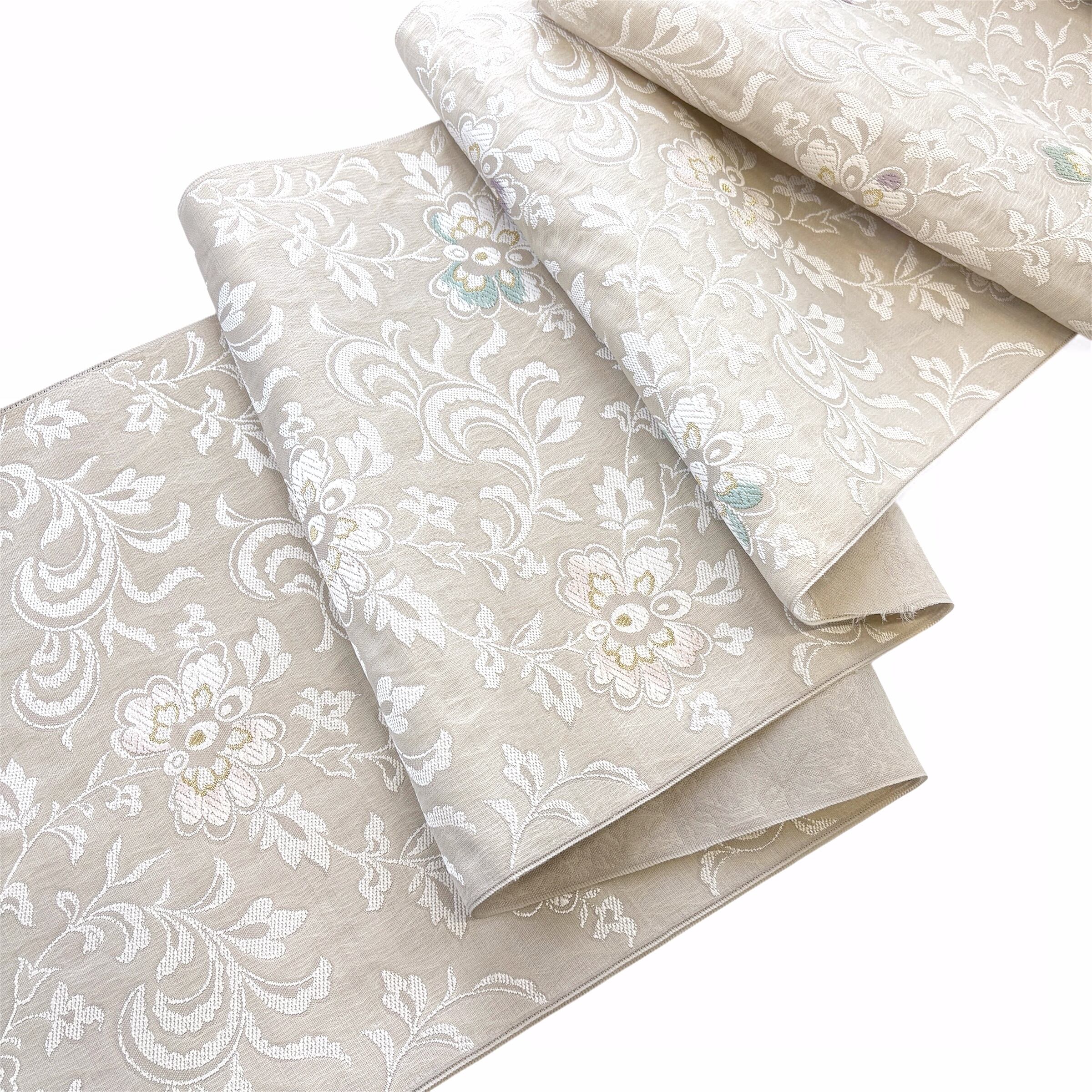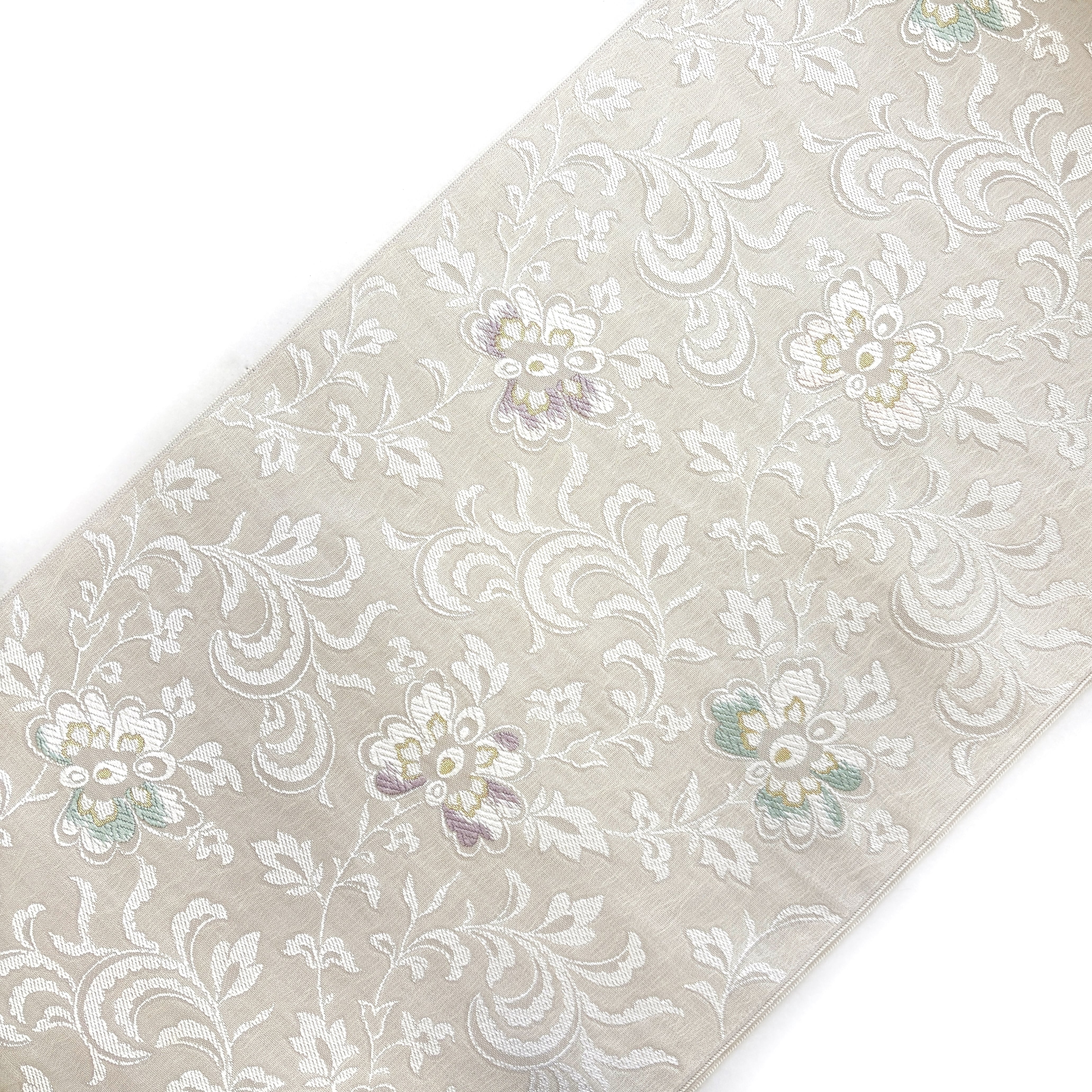 軽やかな立体感のある地にアールヌーヴォーを思わせる洋風な唐草や花模様が織り出された、エレガントなデザインです。