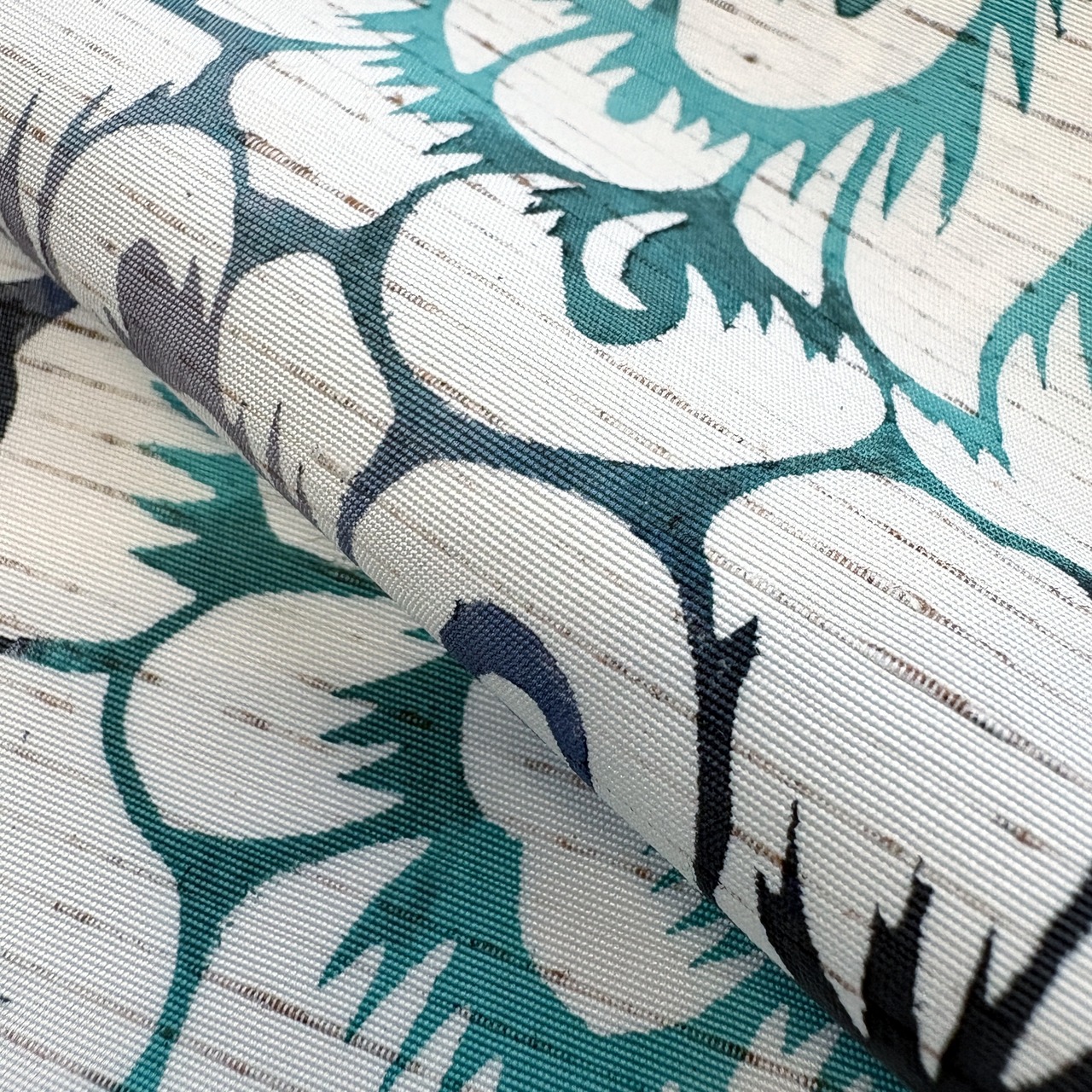 画像は未仕立の状態です。芯を入れてお仕立てする九寸名古屋帯になりますので、仕立て上がると両脇の縫い代分、画像の状態よりも巾が狭くなります。柄の見え方が若干変りますがご了承くださいませ。