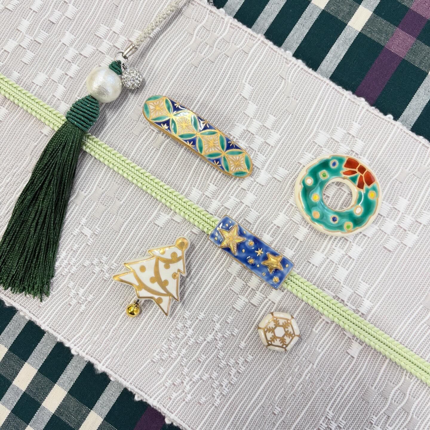 三分紐を通す部分も金具ではなく陶器で作られているため、つけたときに一体感があり綺麗です。側面まで絵付けが施された、五福さんの陶芸作家としての技術も結集した小さな一粒。