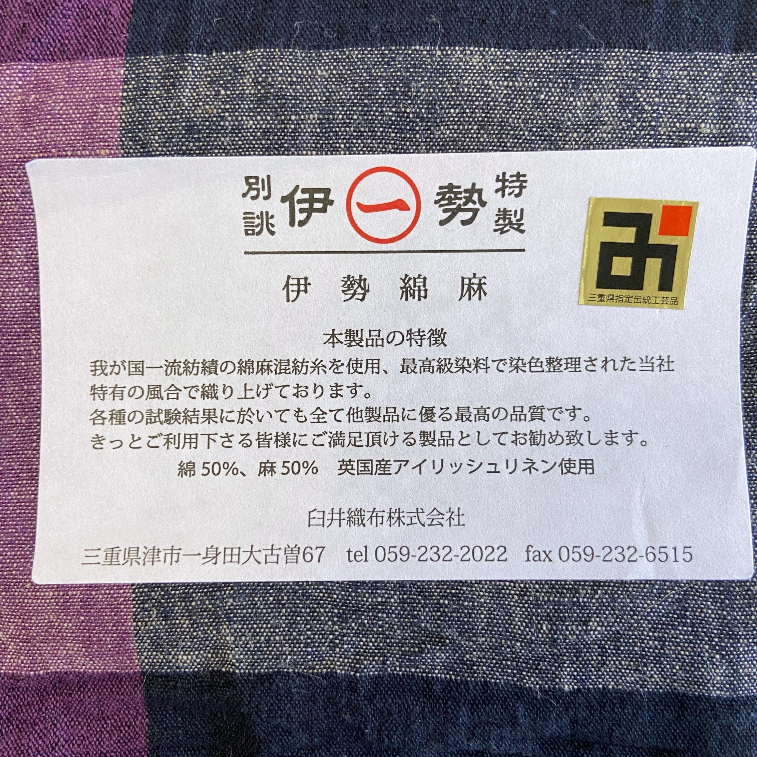 三重県指定伝統工芸品 伊勢木綿織元 臼井織布(株)製