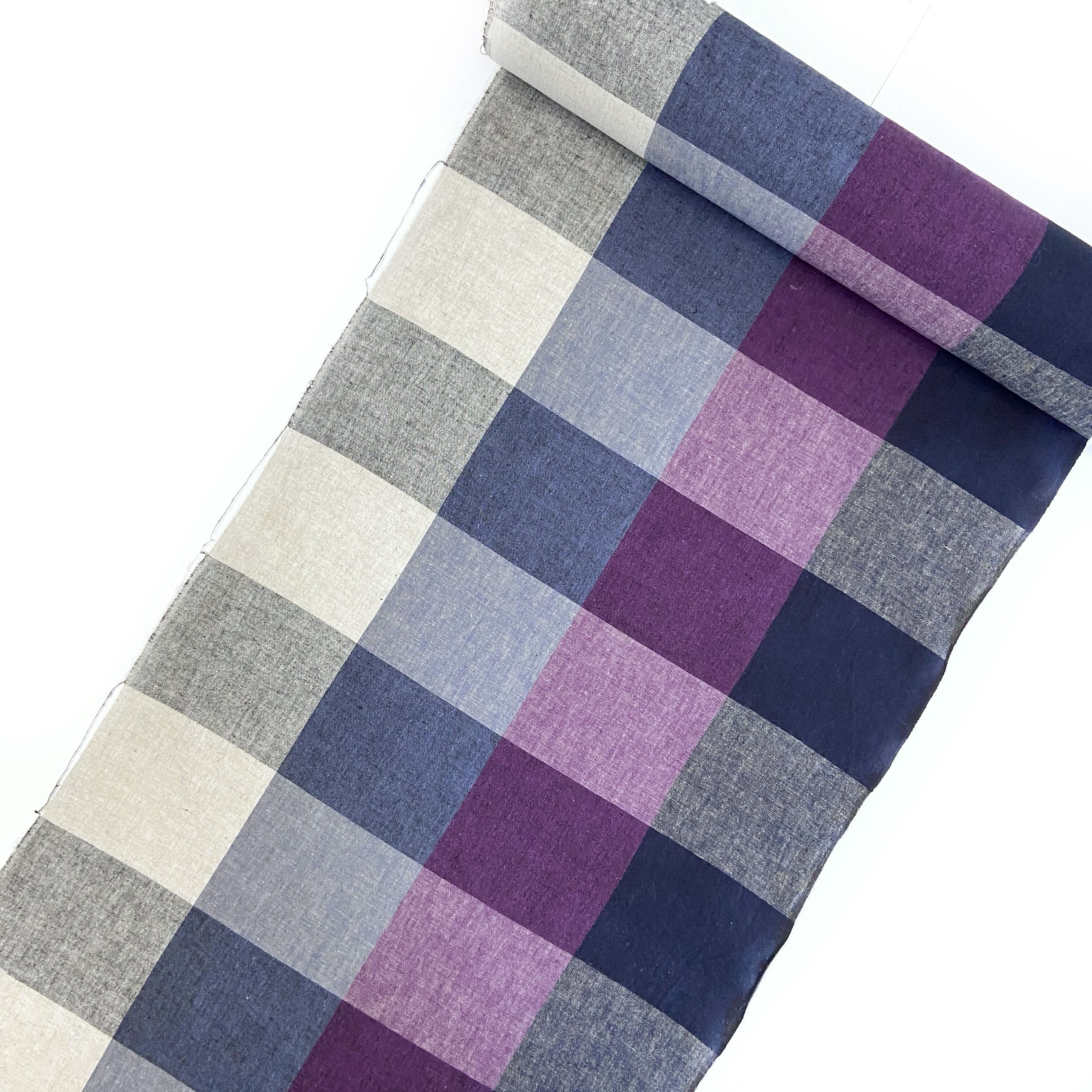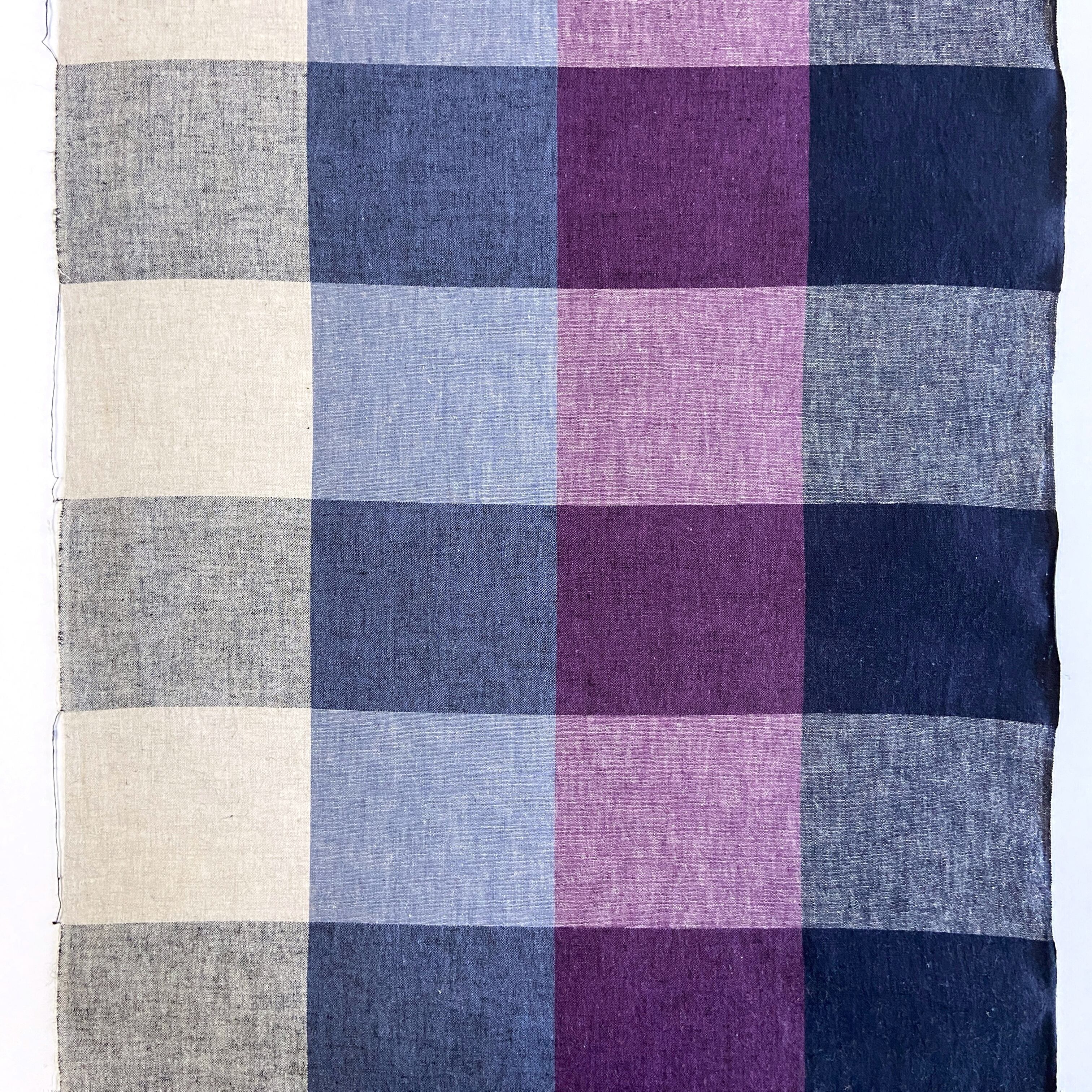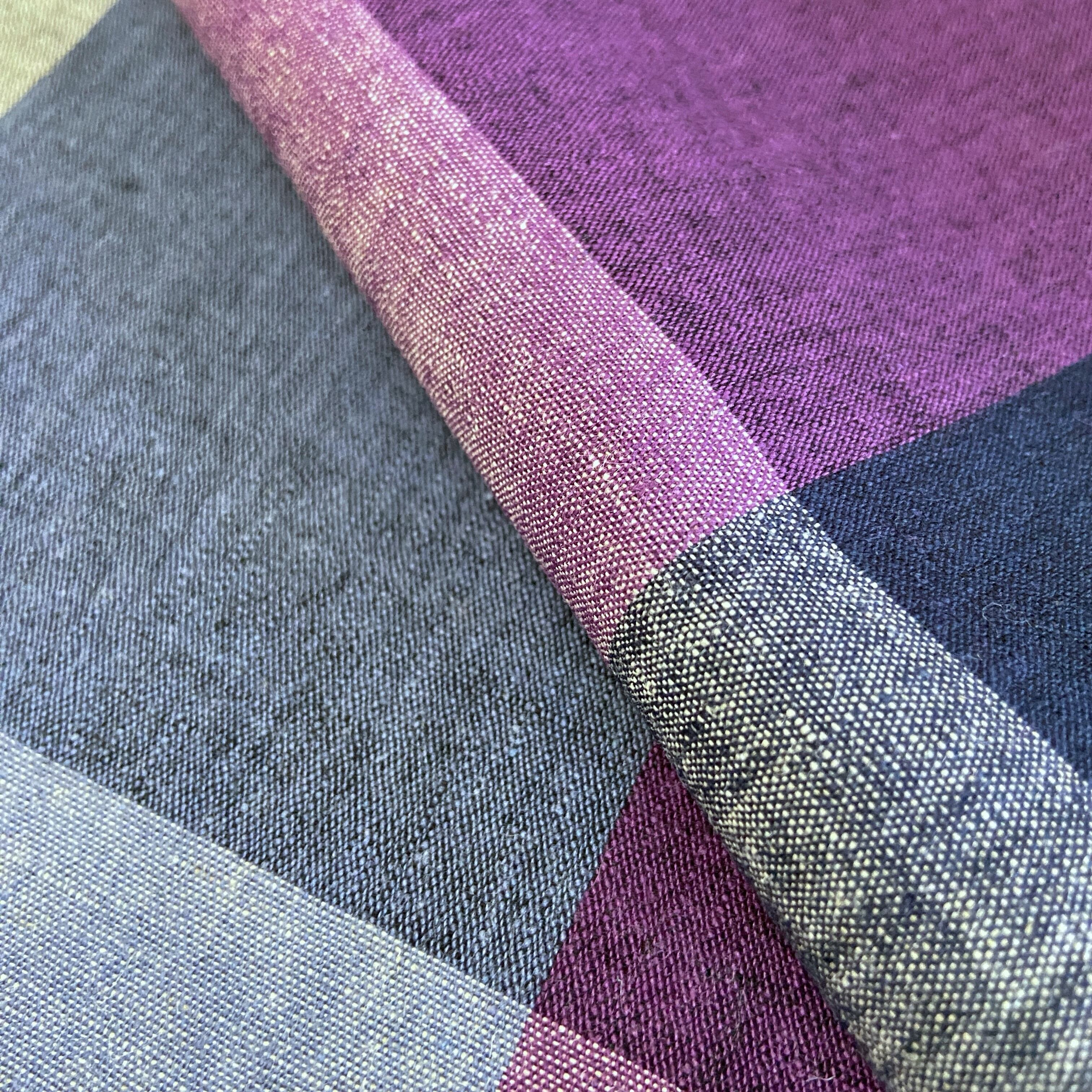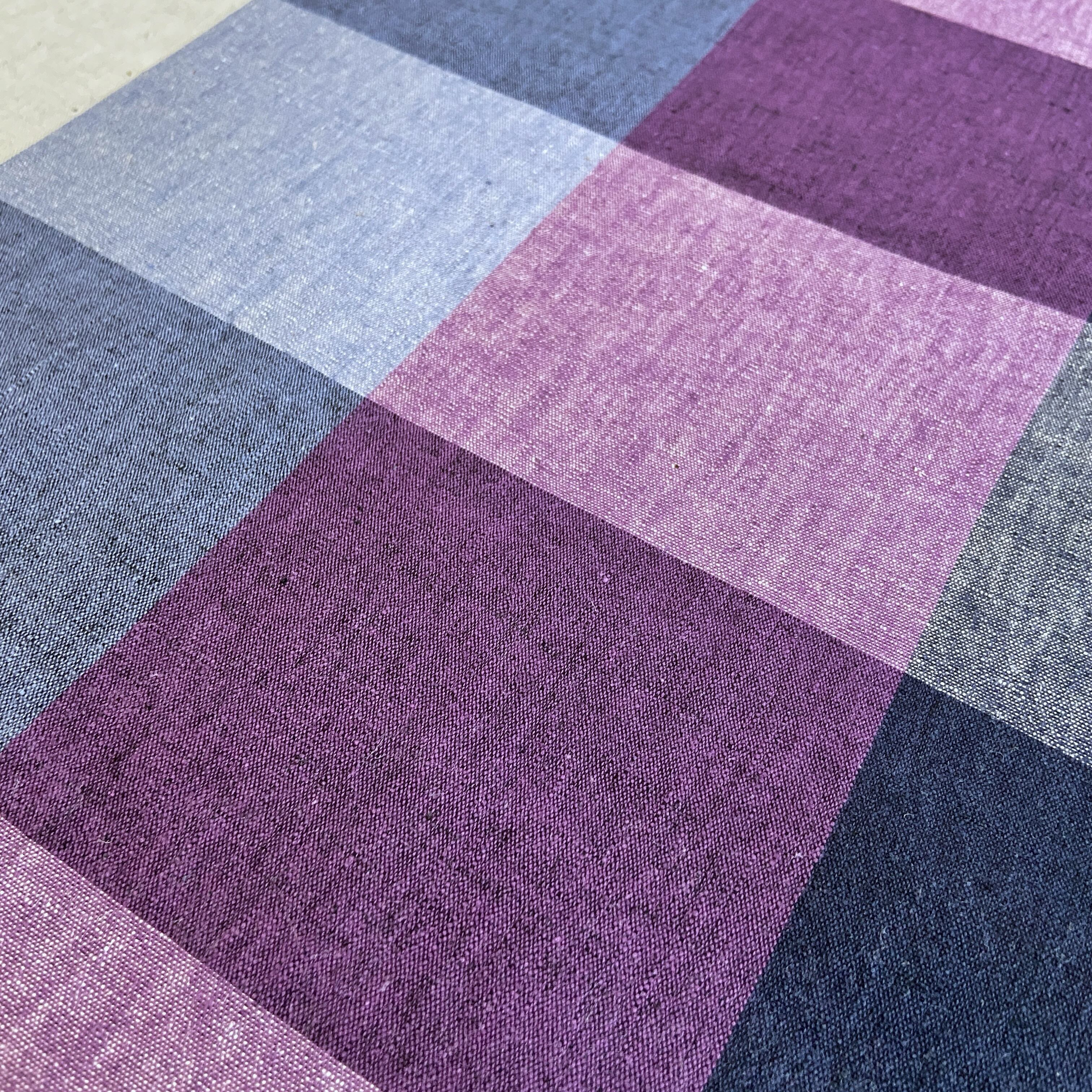 伊勢綿麻 ブロックチェック 紫×ネイビー