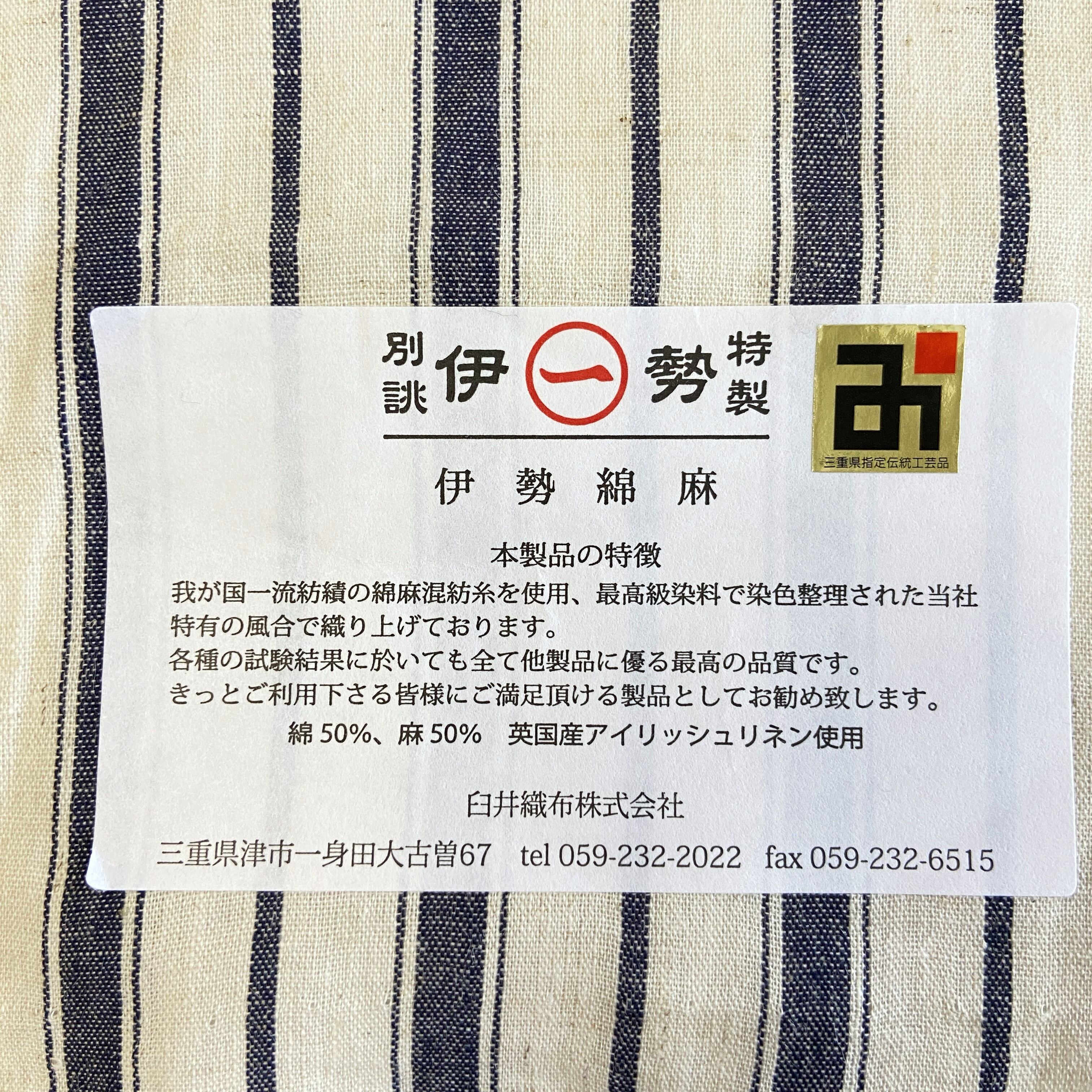 三重県指定伝統工芸品 伊勢木綿織元 臼井織布(株)製