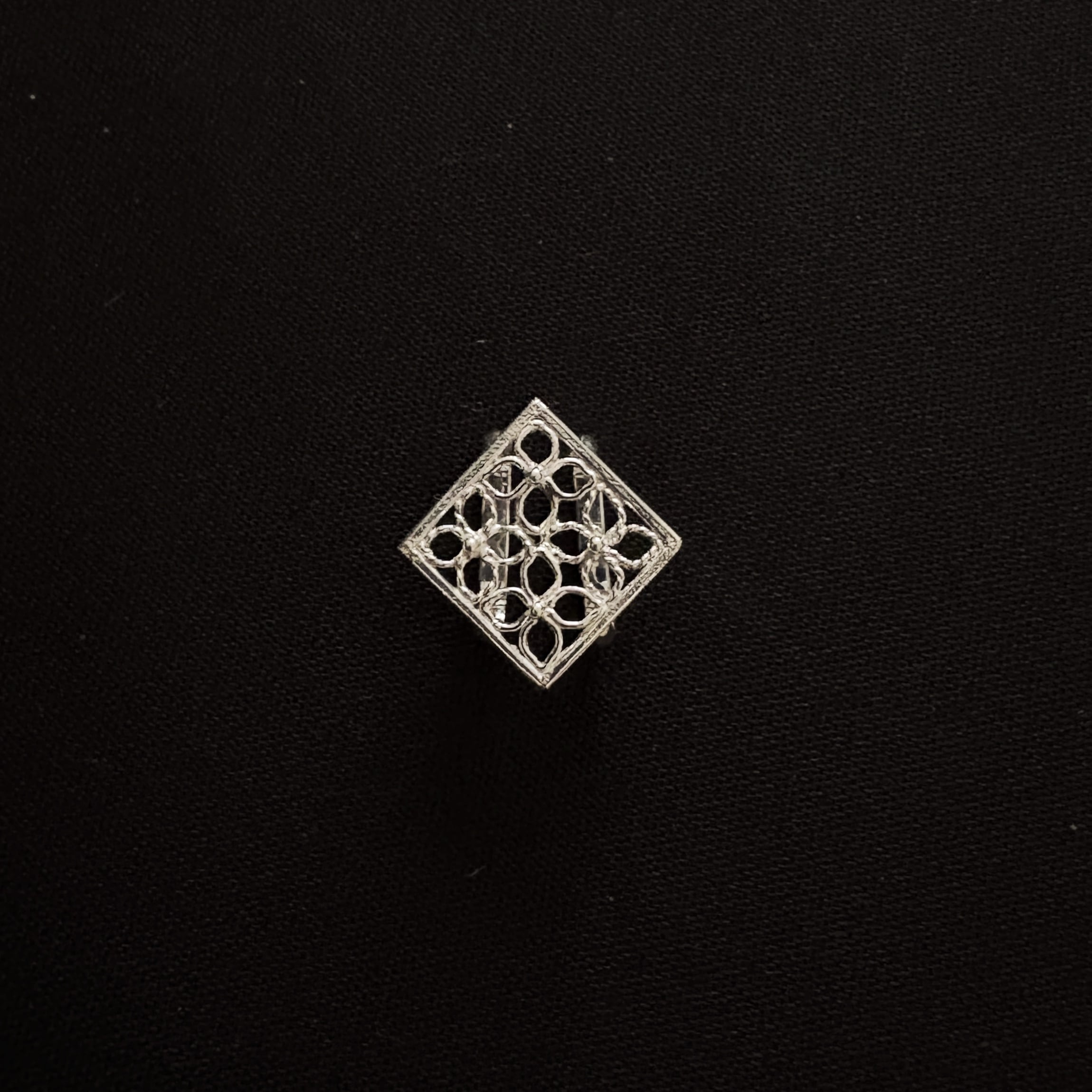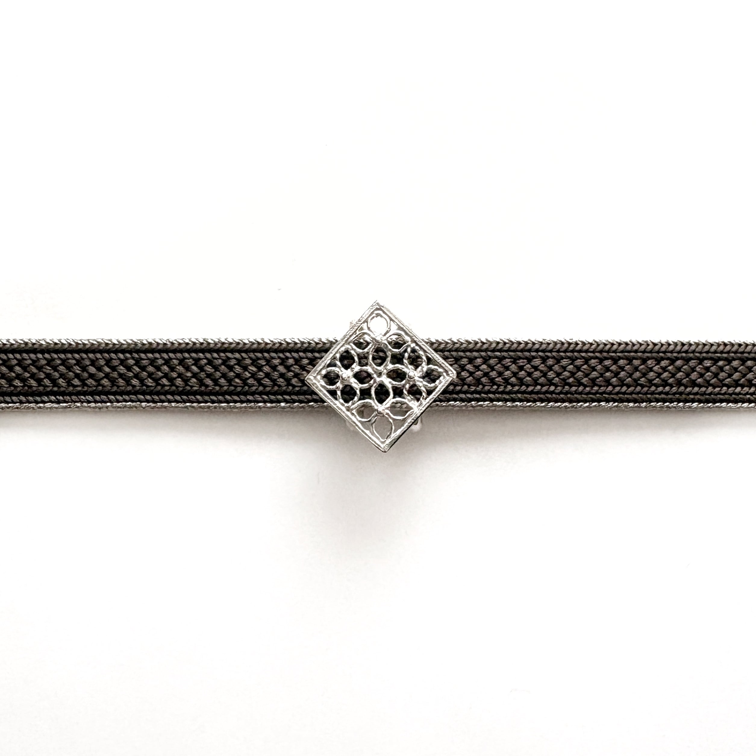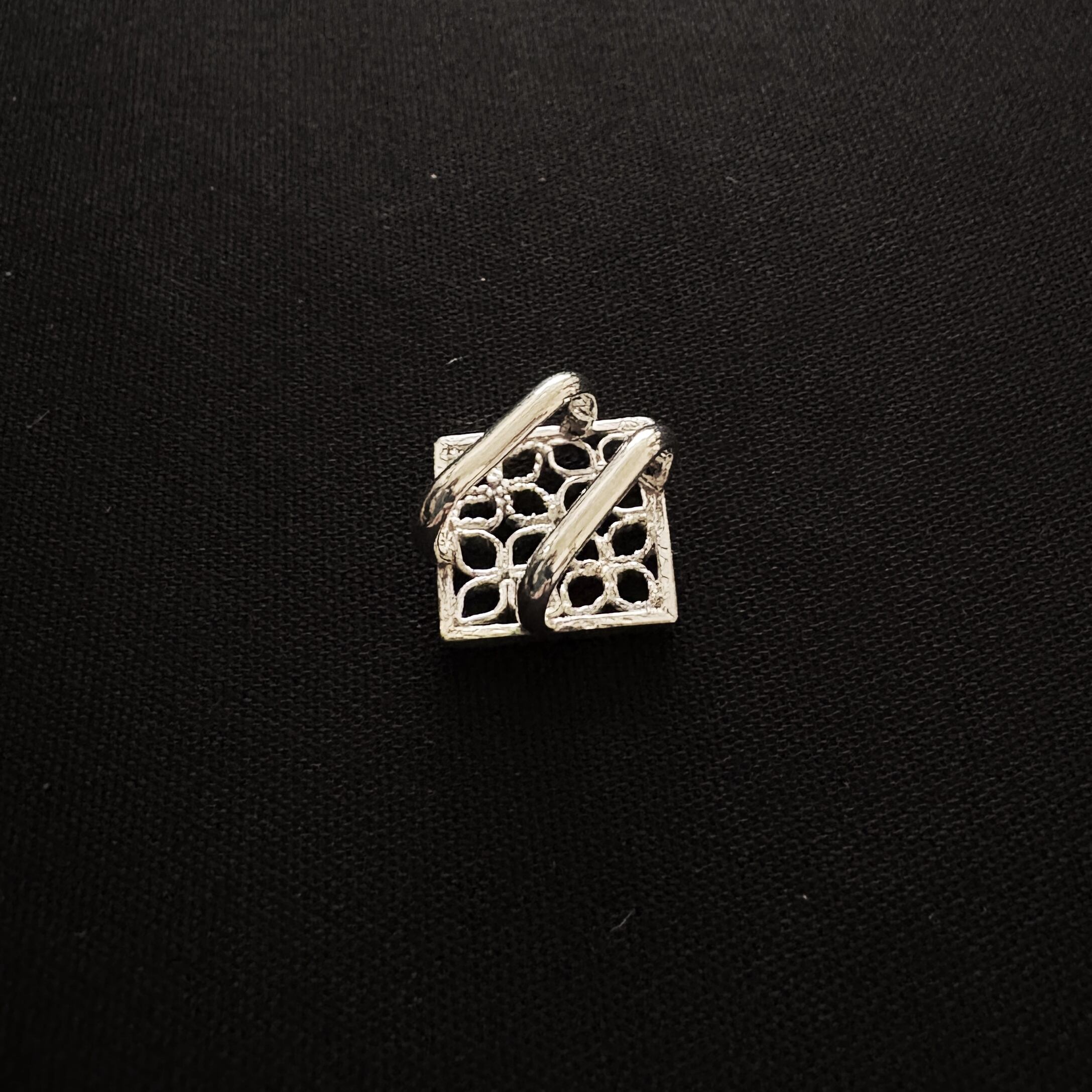 繊細な銀線細工の技法で作られた、タイルをモチーフにした小さな帯留。