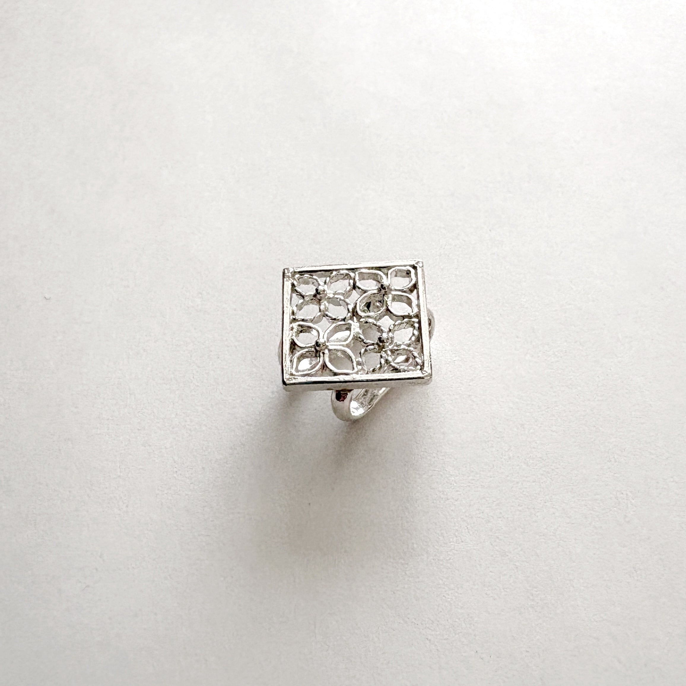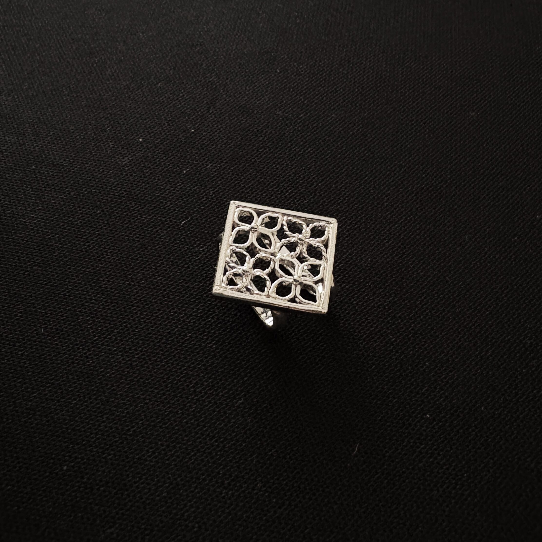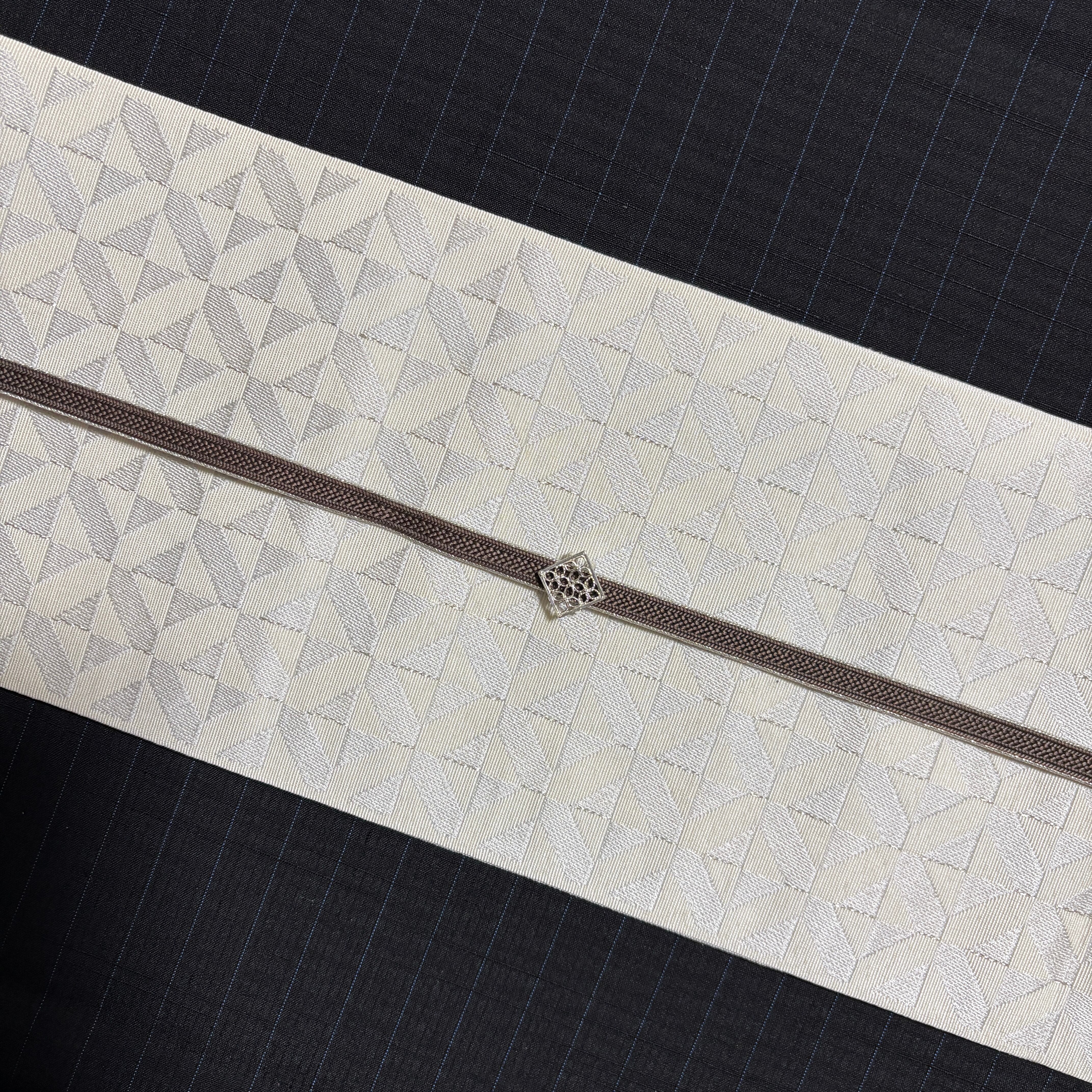繊細な銀線細工の技法で作られた、タイルをモチーフにした小さな帯留。