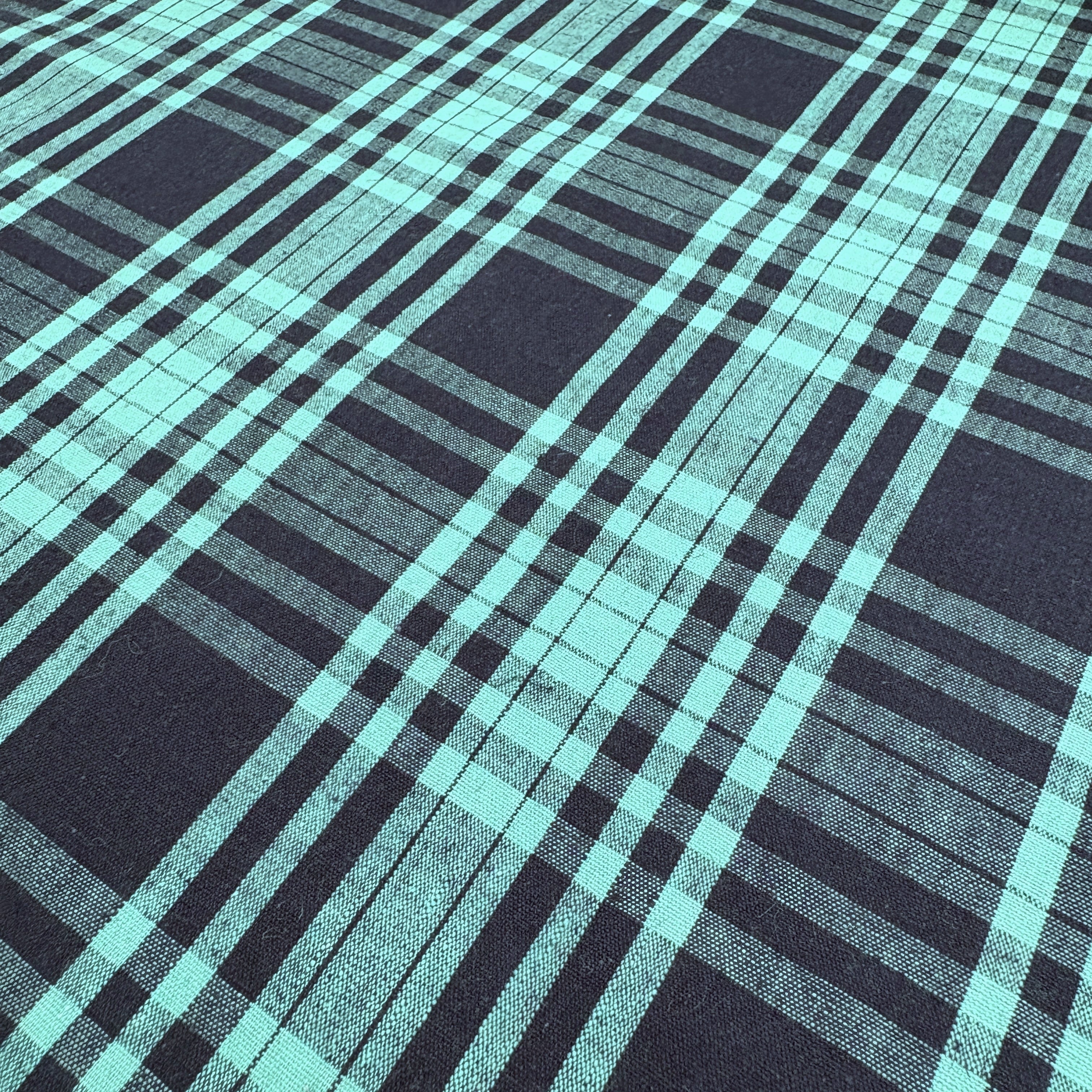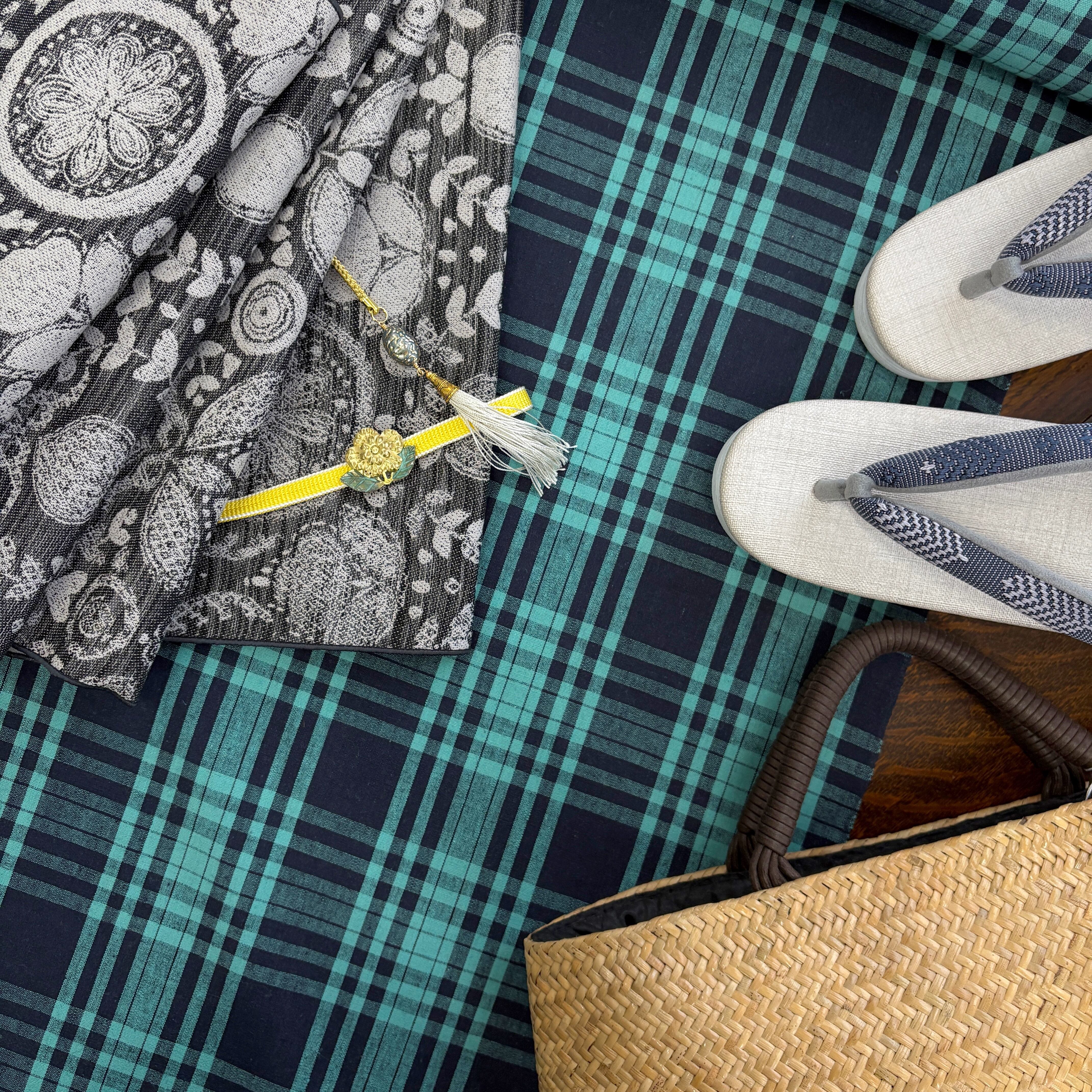 伊勢綿麻 格子 ネイビー×ターコイズ
