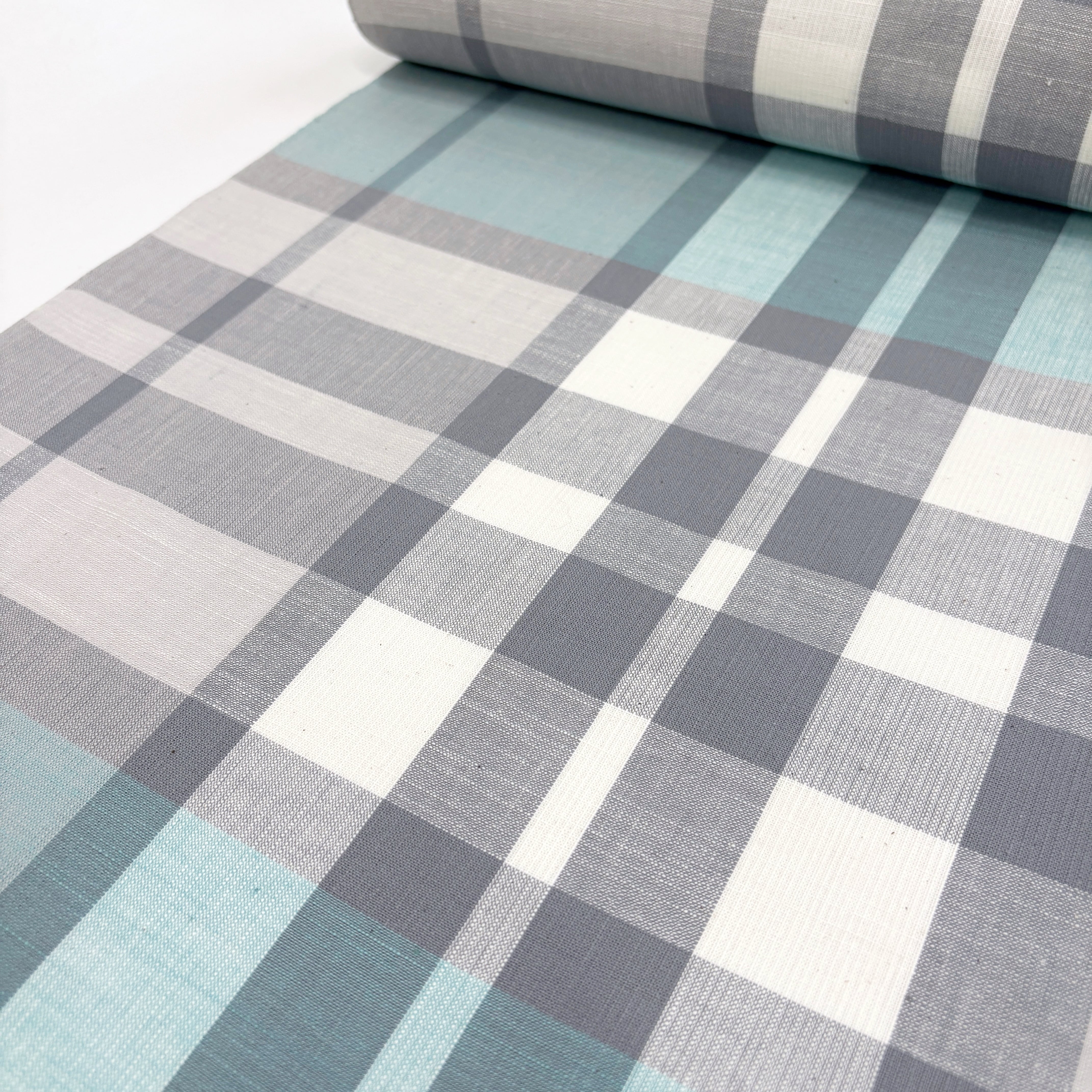 太さの異なる糸を組み合わせて織られている片貝木綿は、このため生地感に凹凸があるのが特徴。これにより紬のような味のある立体感があり、肌触りがさらりと軽くしなやかな風合いです。