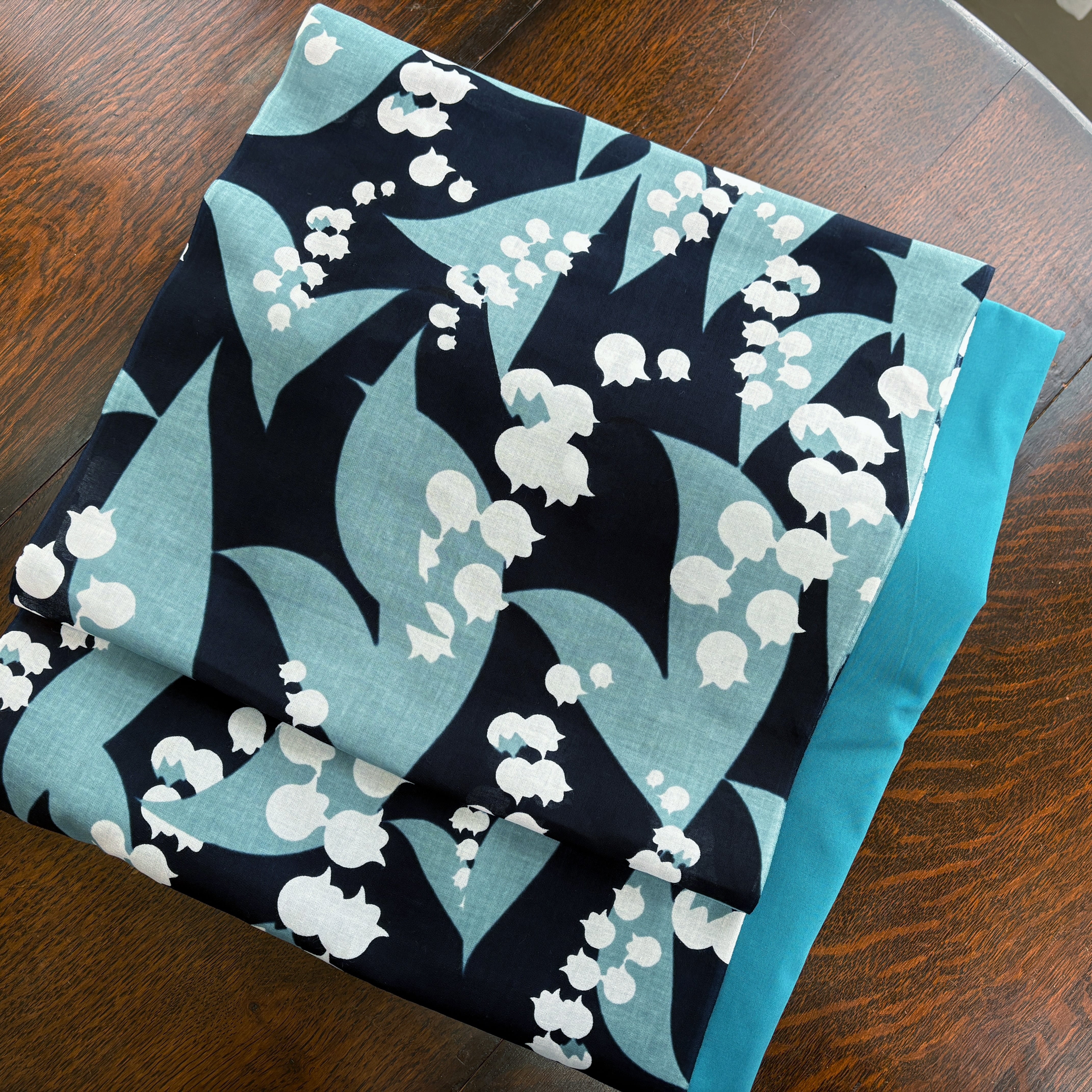 ・名古屋帯 Aobato 鈴蘭ネイビー/太鼓返し(裏)ターコイズ