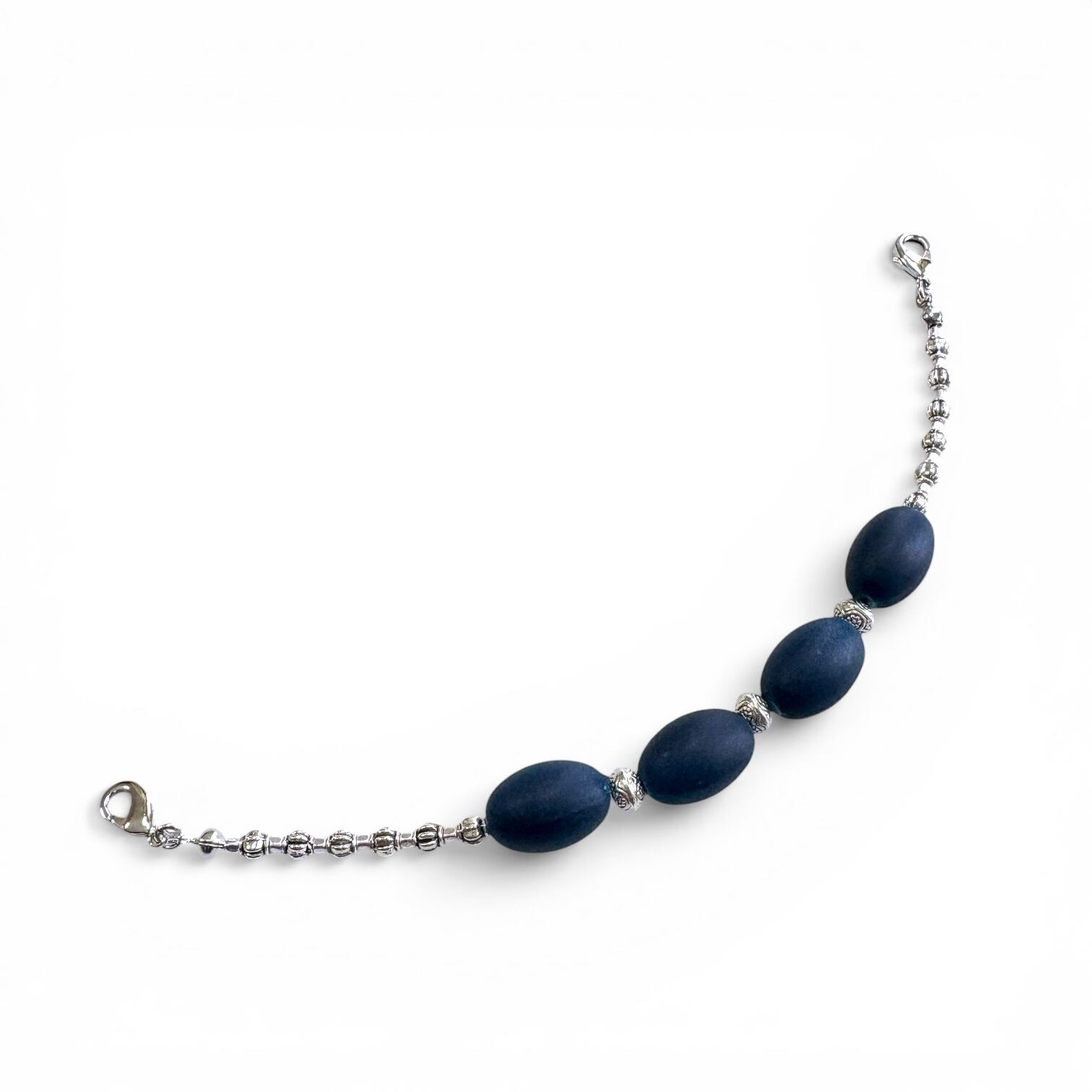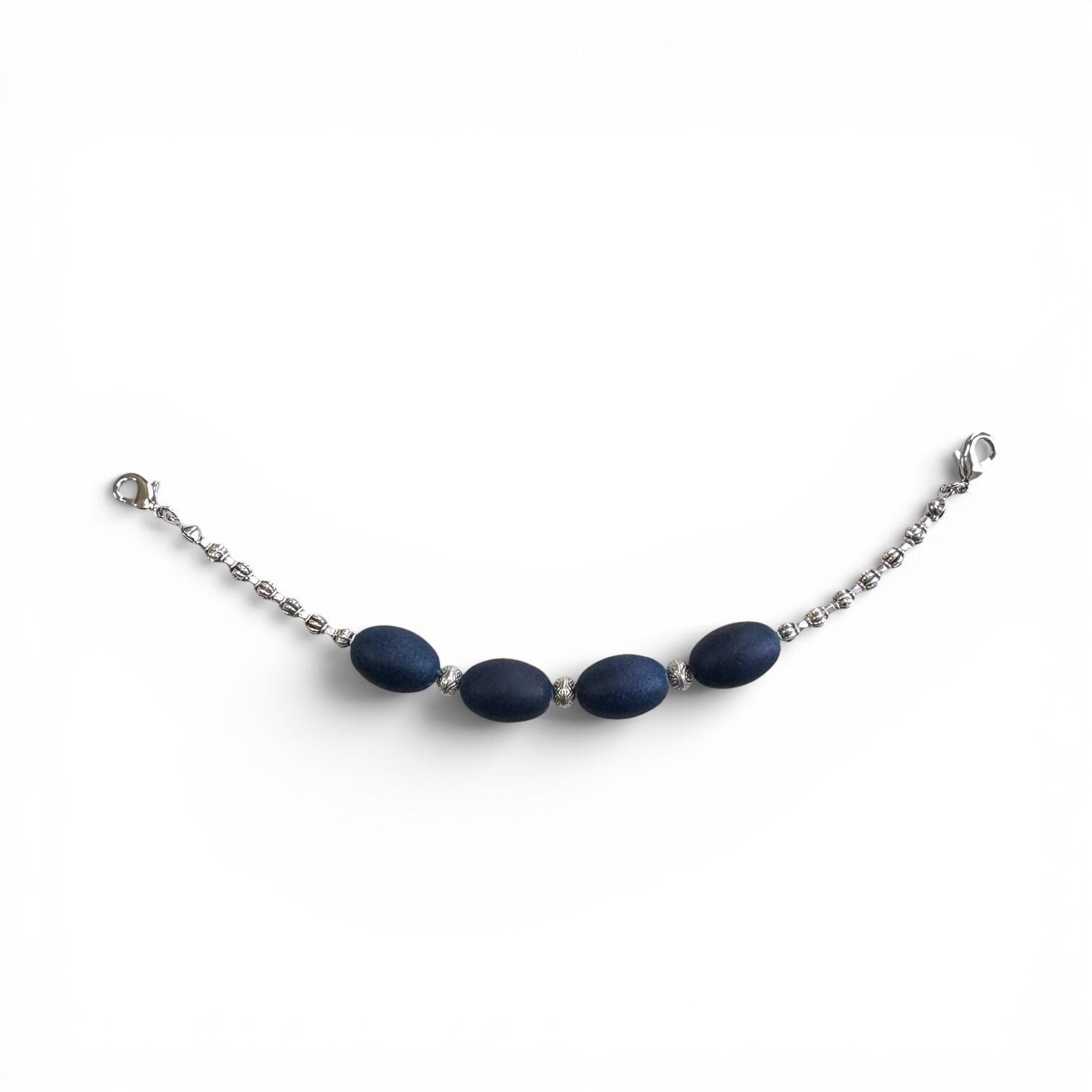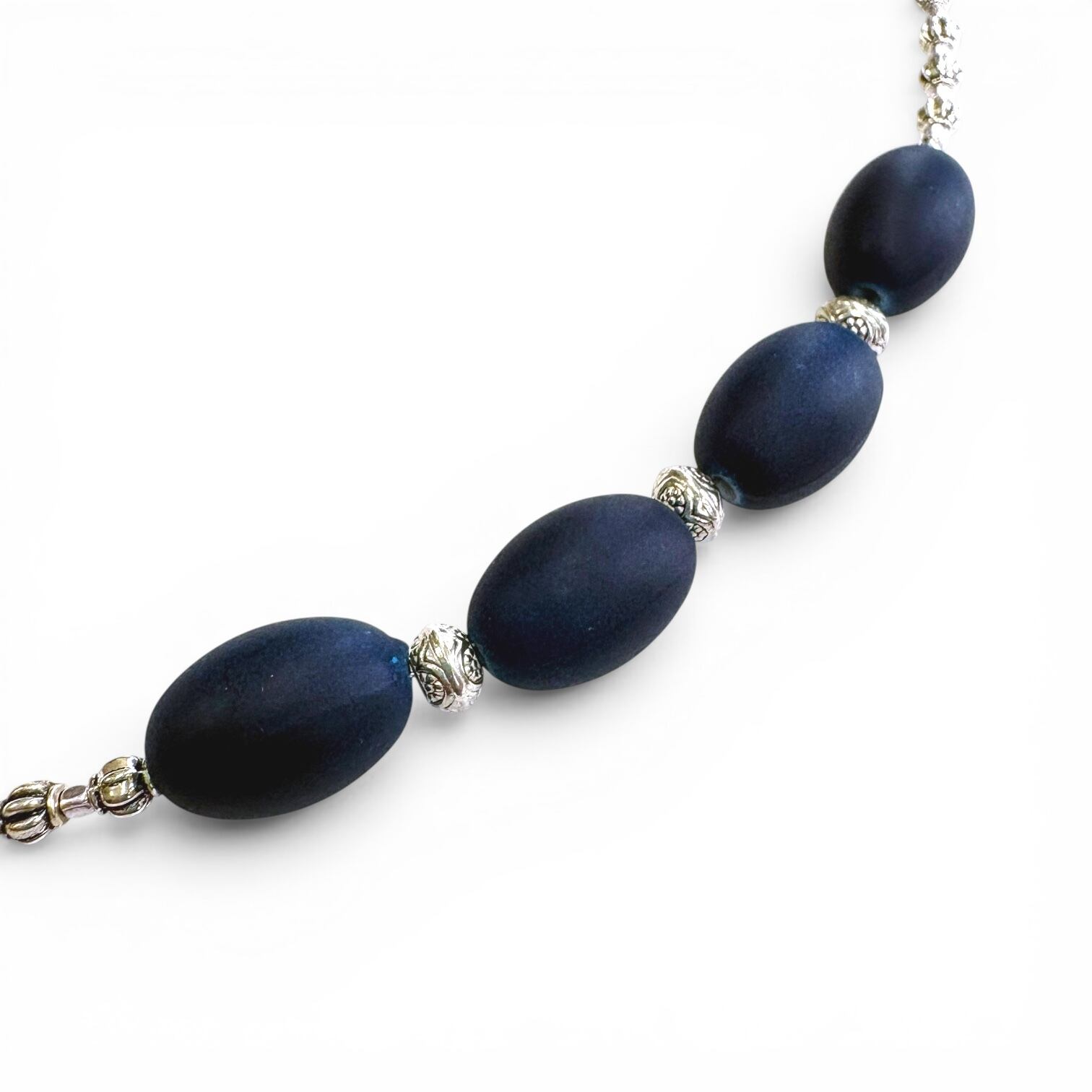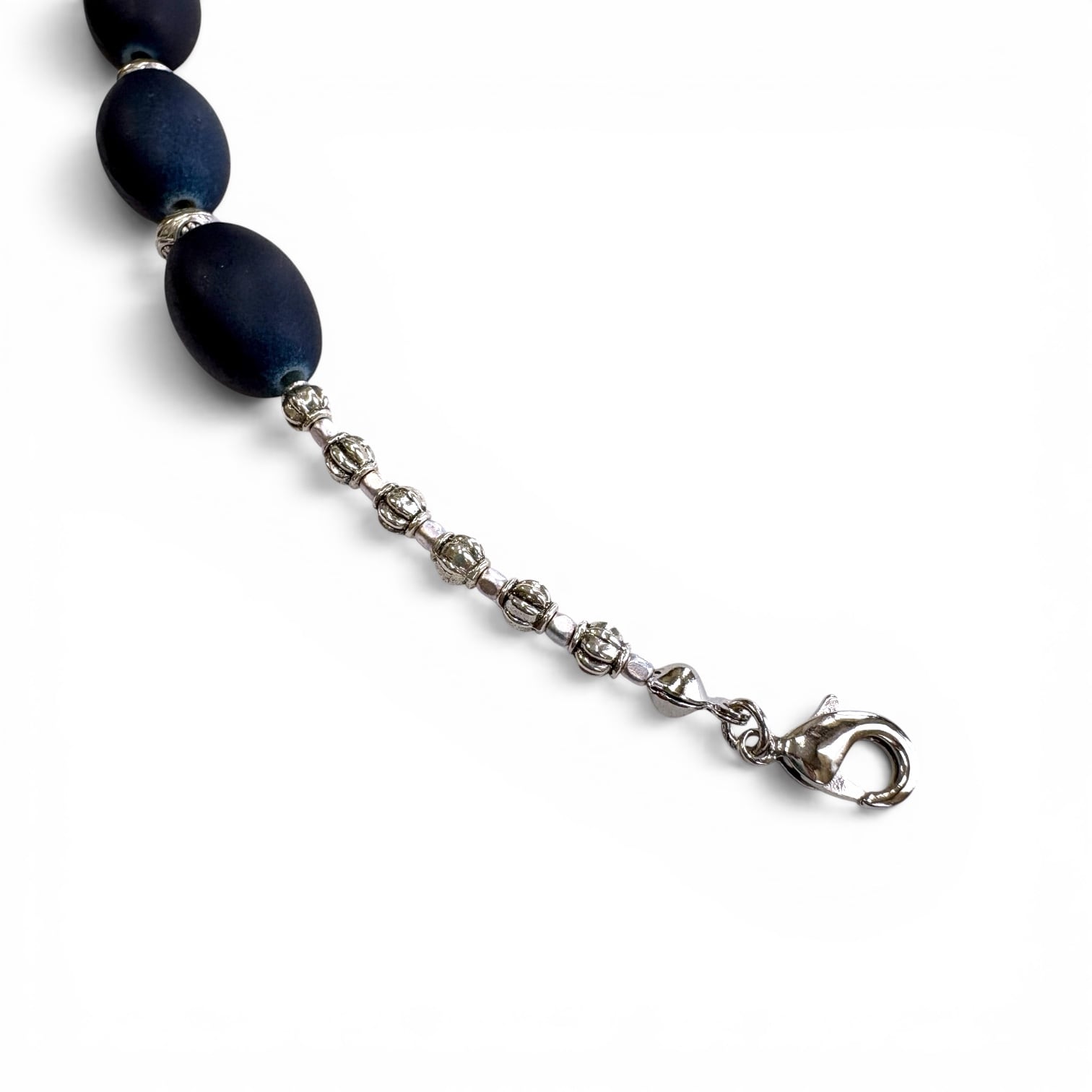 ネイビーの楕円形のパーツを使用した羽織紐。