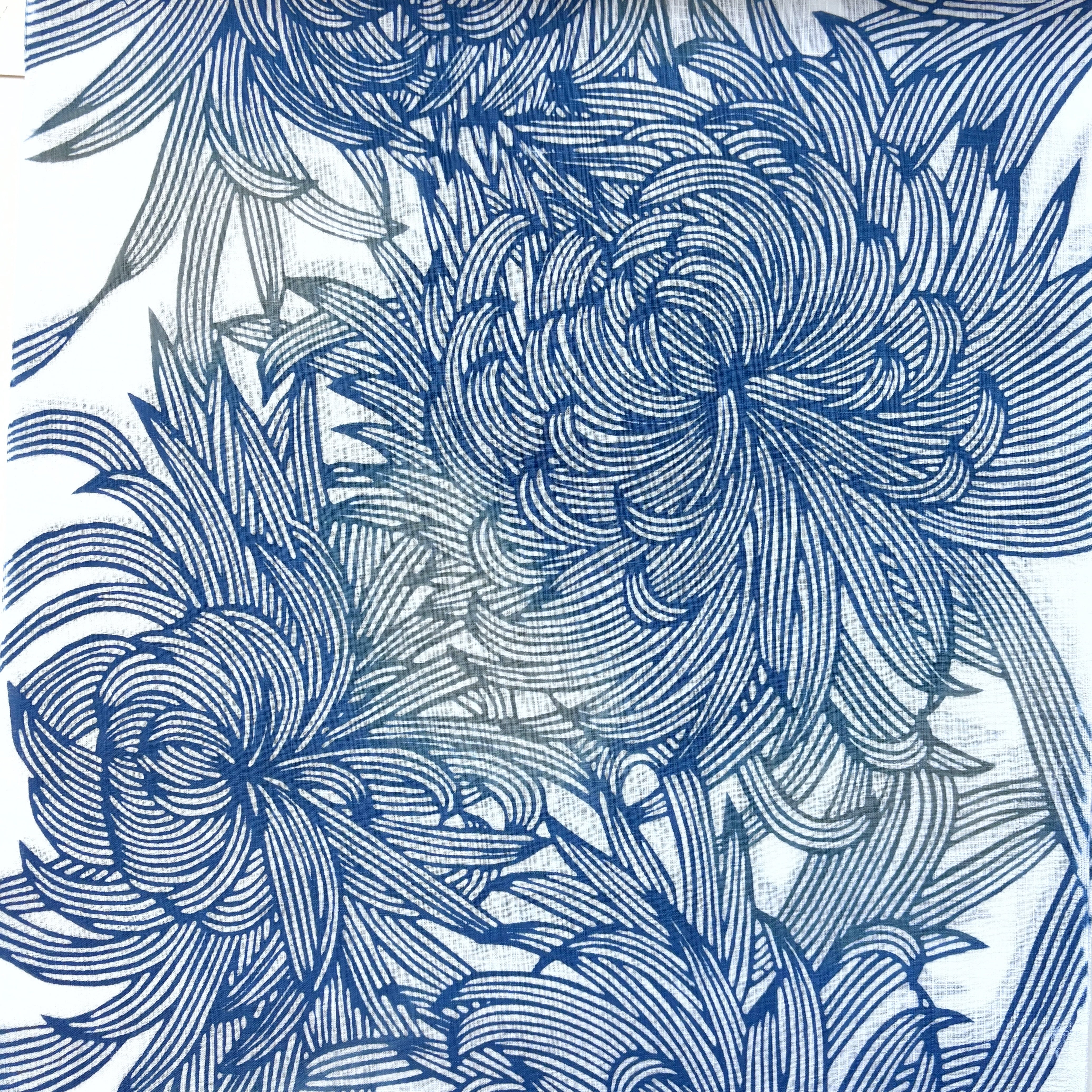 白地にブルー 注染 巾約38㎝×12m